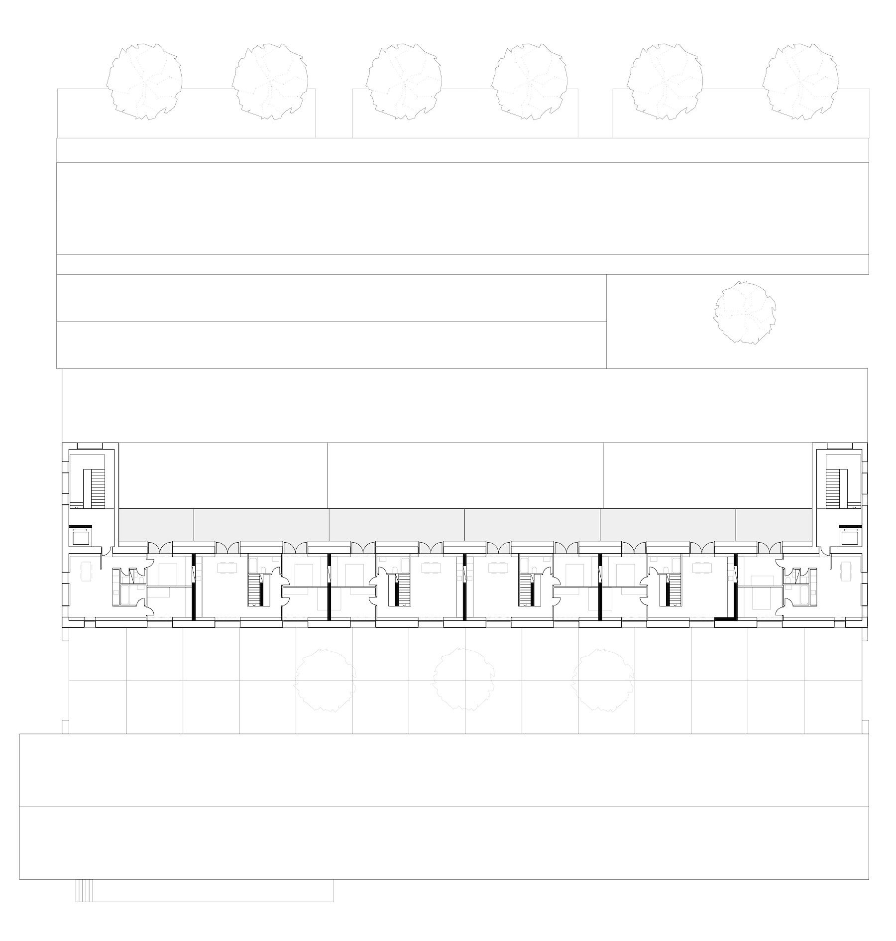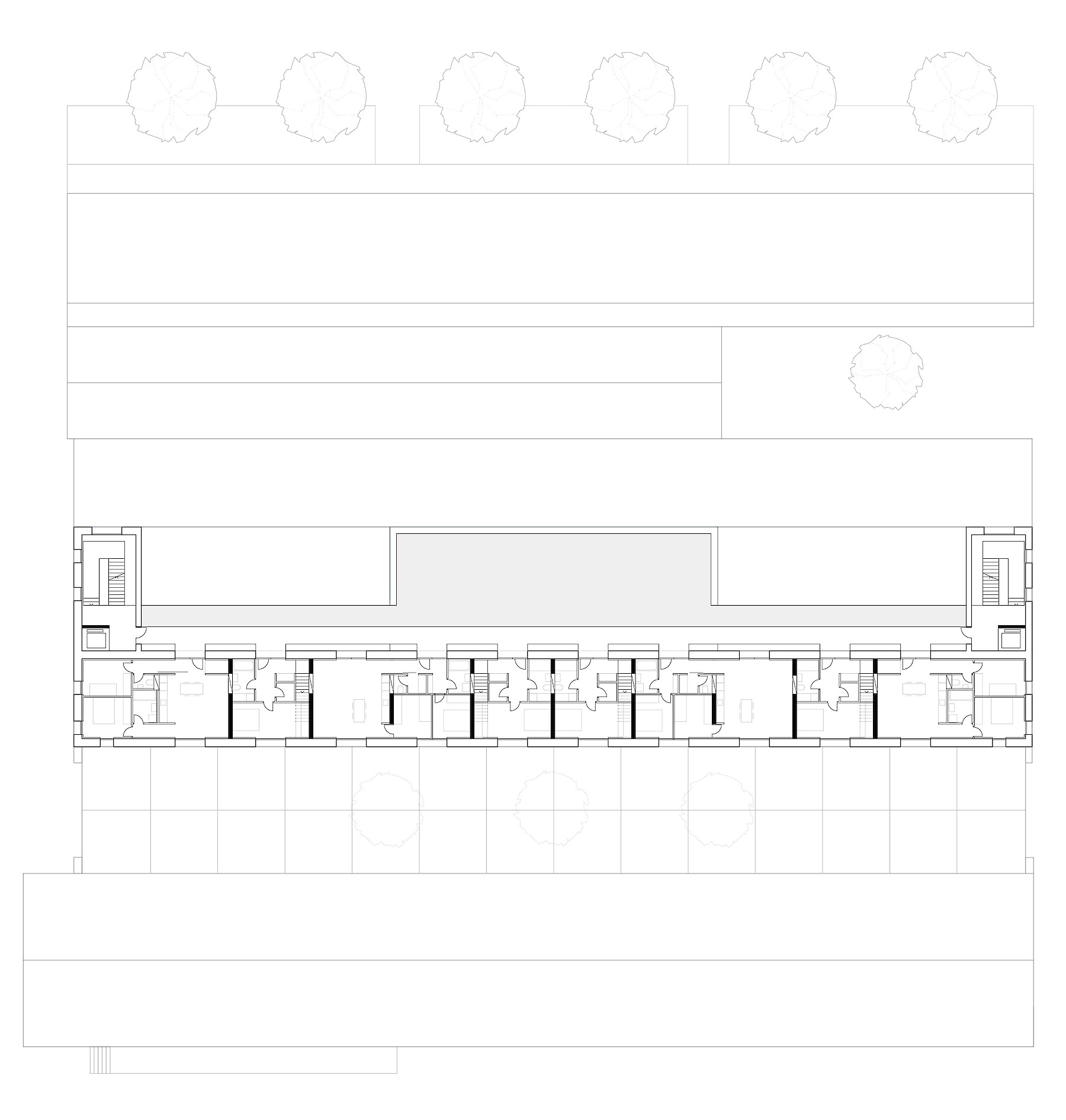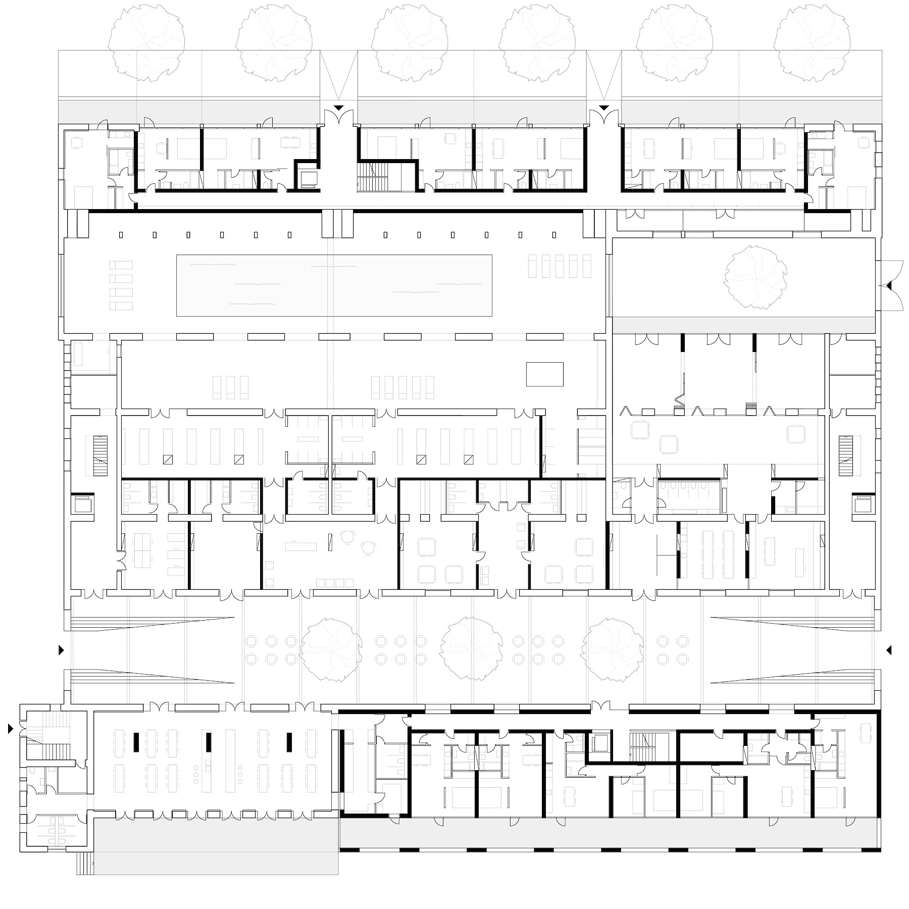 The large Vooruit bakery built in 1906 in the Belgian city of Ghent, which was organised on a cooperative basis, offered a reference for the Viennese building project.