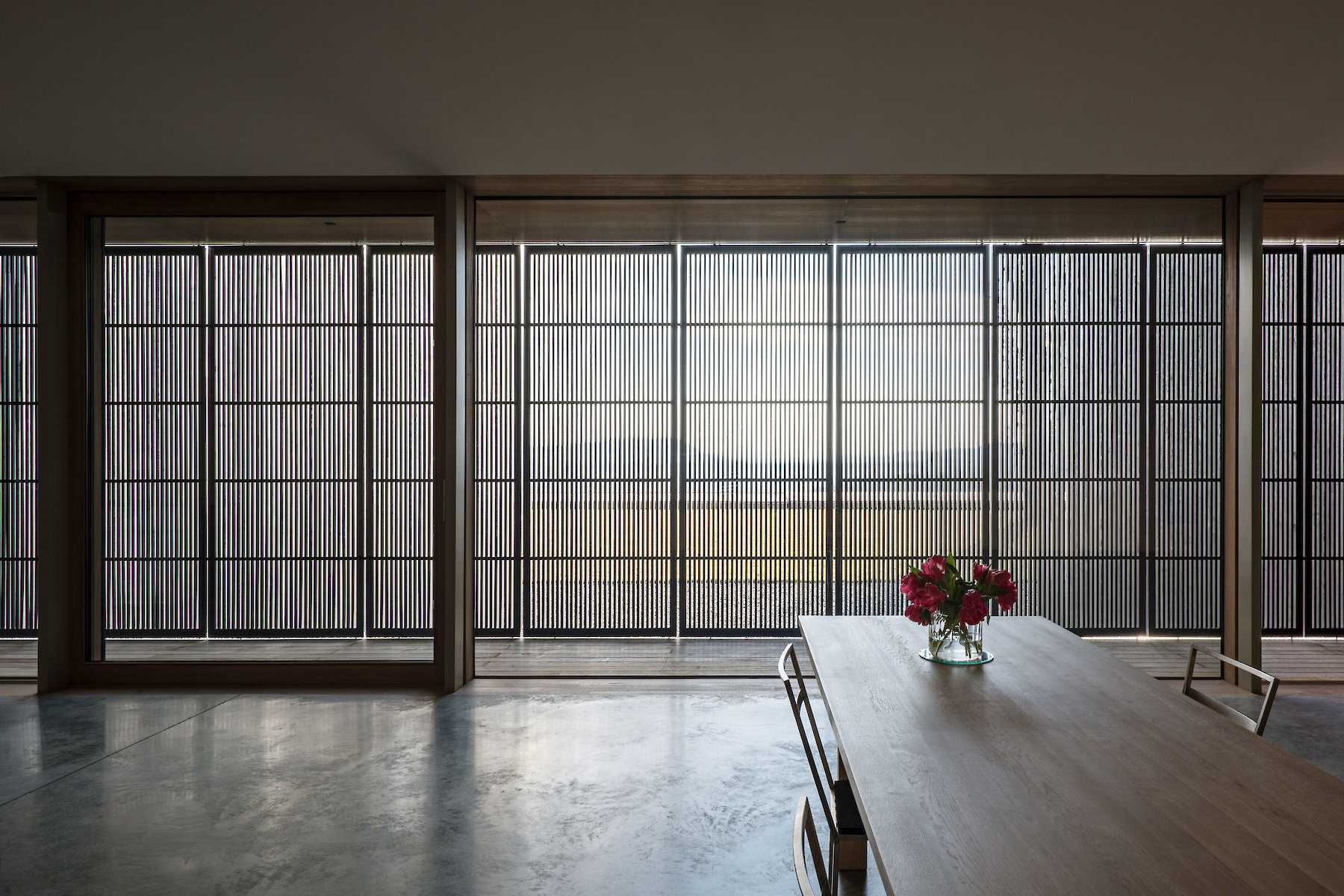 As protection against the sun and from prying eyes, the facade elements play a major role in determining the relationship with the exterior space, which in turn with its panorama can, and is intended to, become a considerable presence for the interior space.