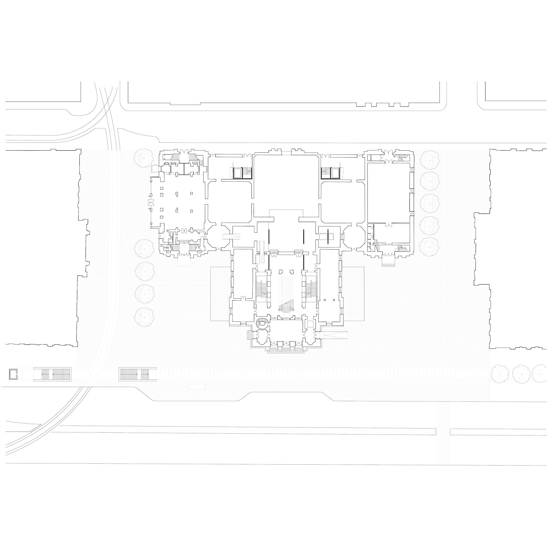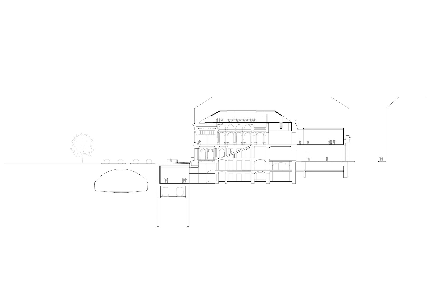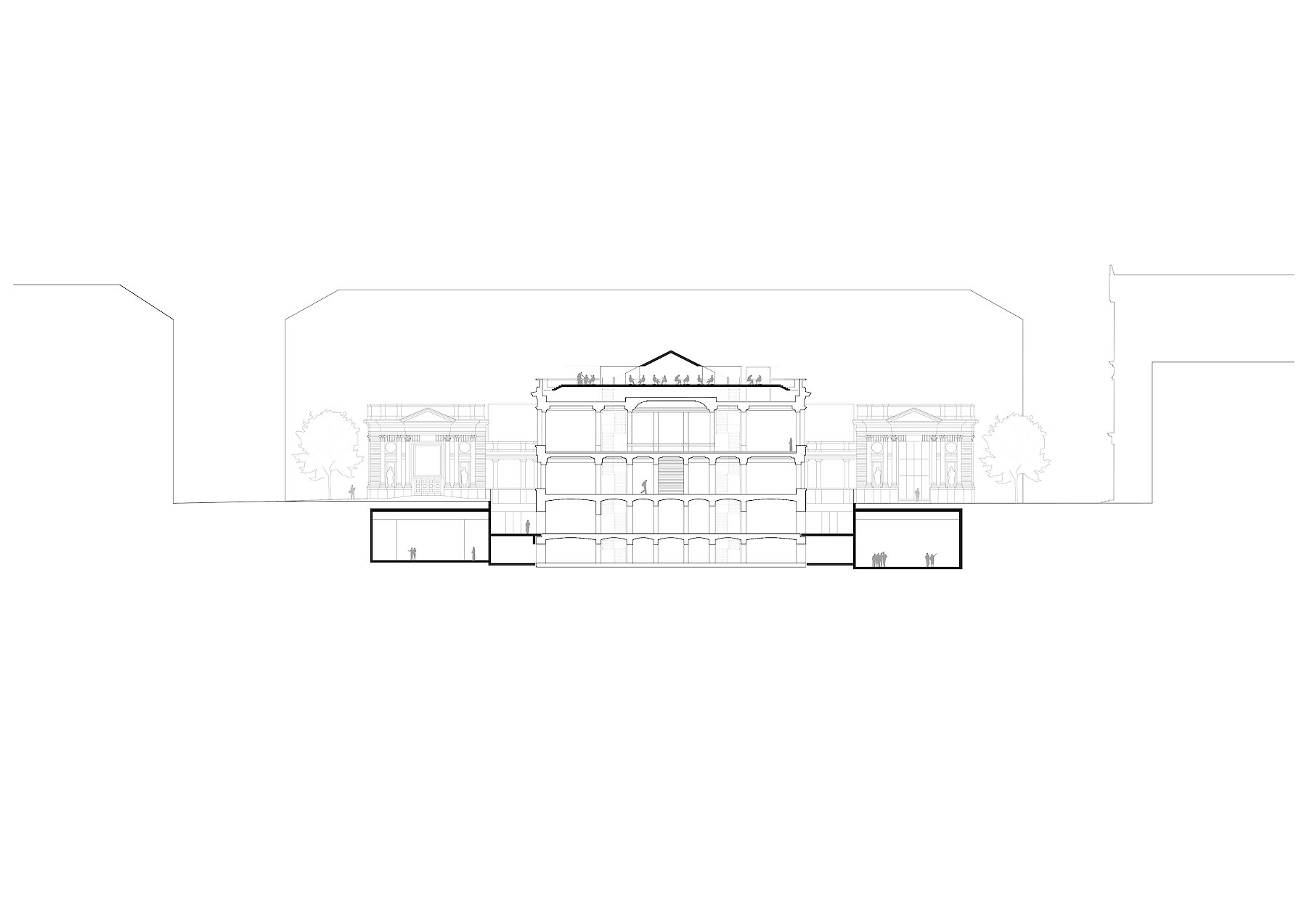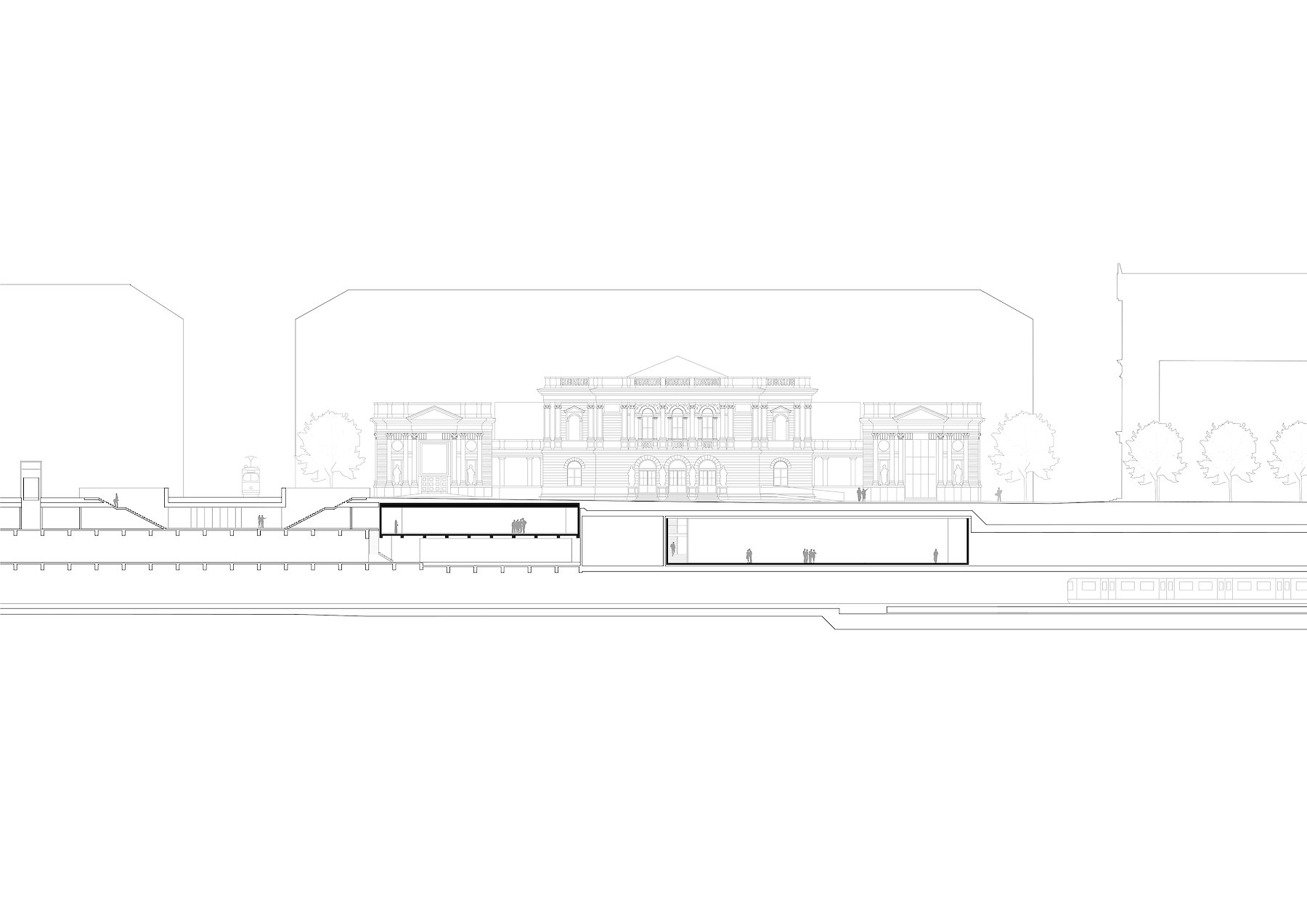 The construction of a subway reversing system at Karlsplatz creates a hollow space above the railway tracks that is suitable for further uses and is directly adjacent to the Künstlerhaus. This empty space, now available for the Künstlerhaus, was also the reason for its expansion with additional exhibition rooms.