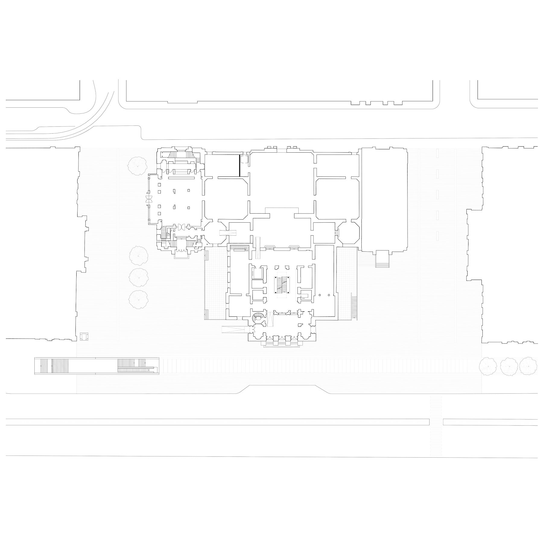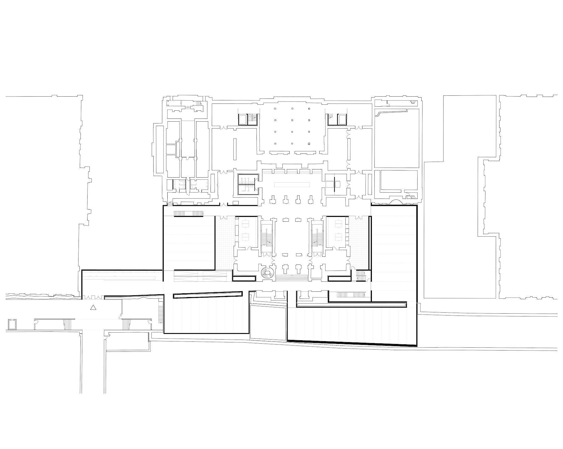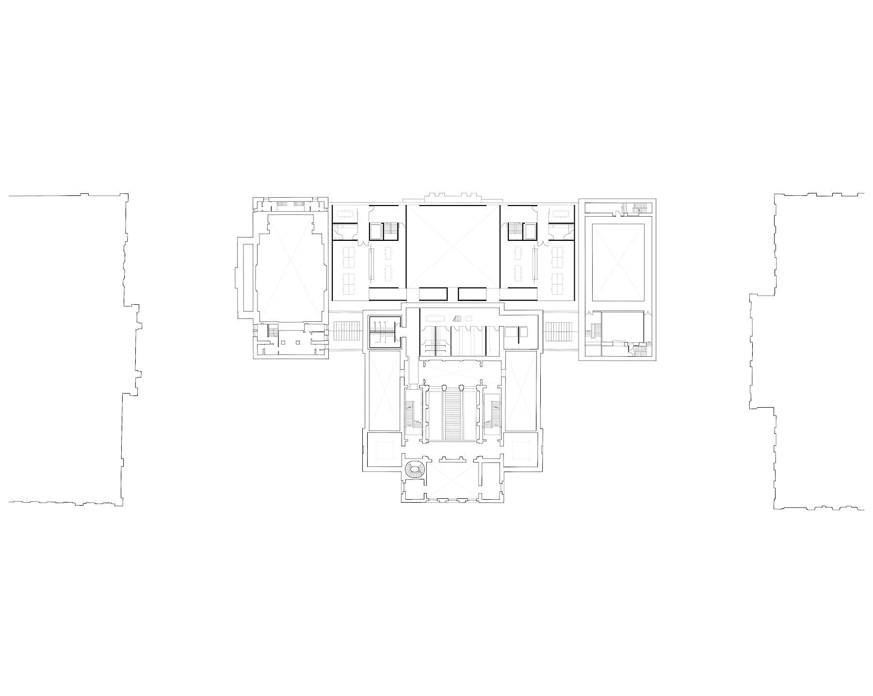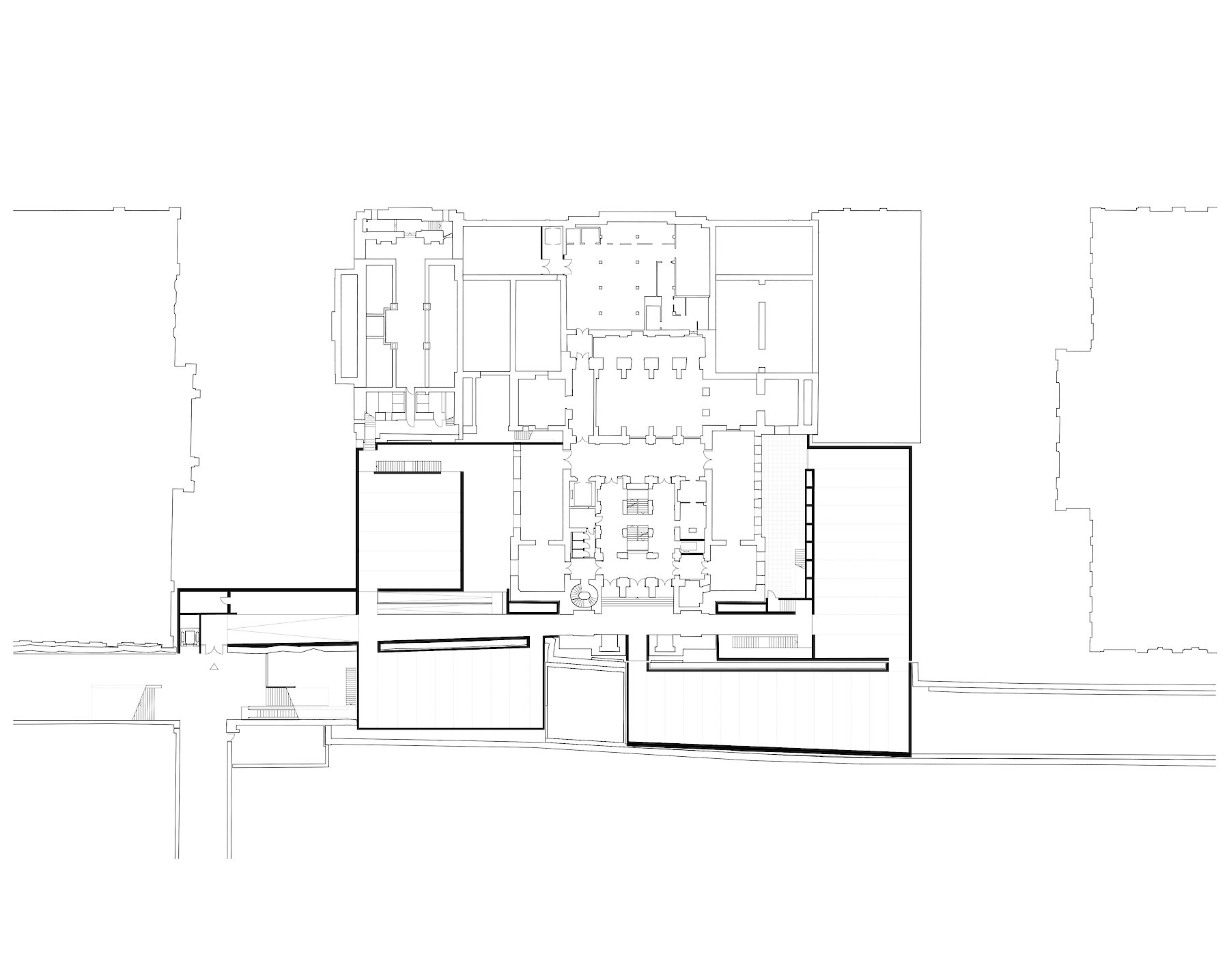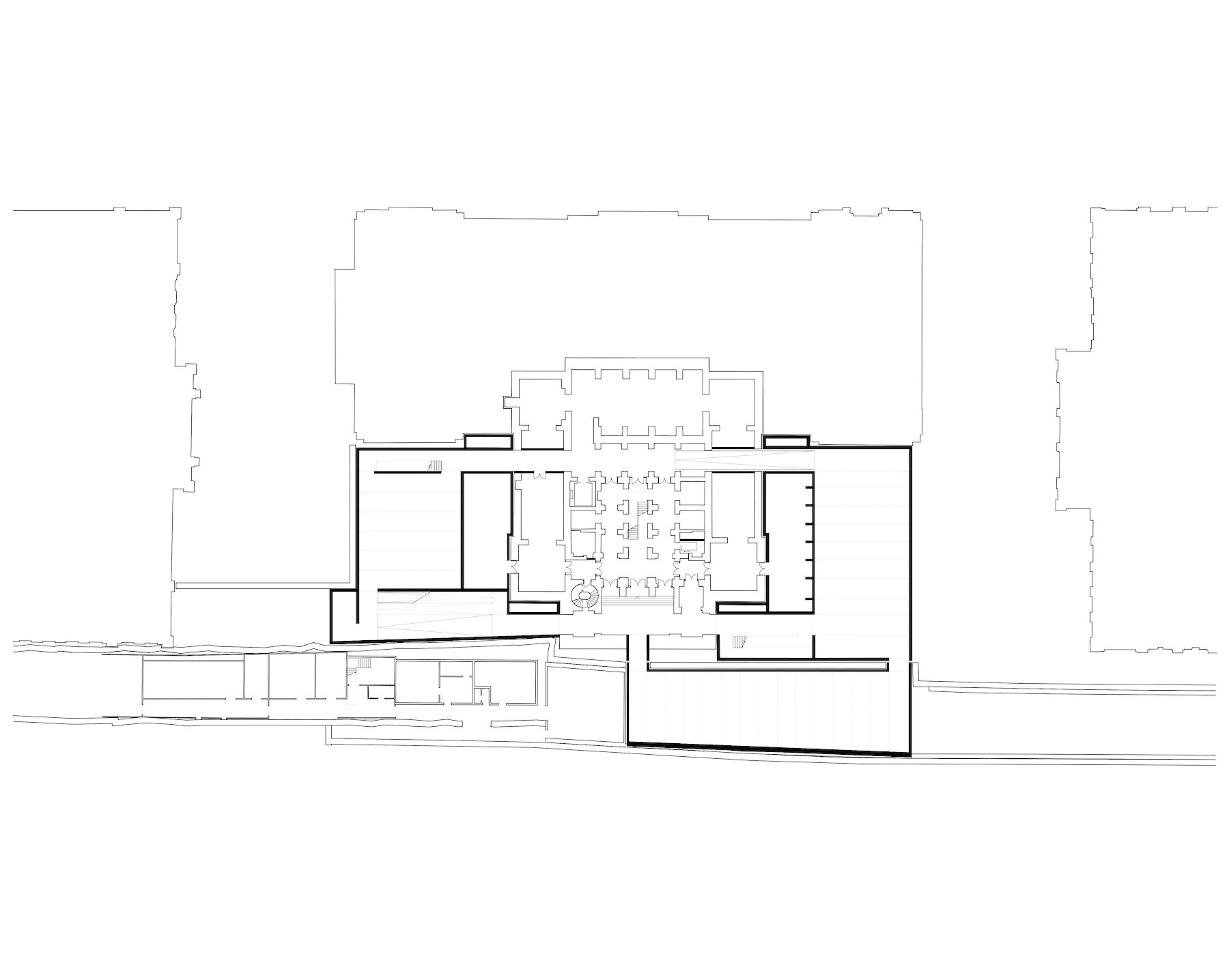 The rooms of the old building are directly adjacent to the structural extension. All of the new room sequences in the existing building and in the extension form a closed exhibition area around the central stairwell which, depending on the occasion, can sometimes only be used partially.