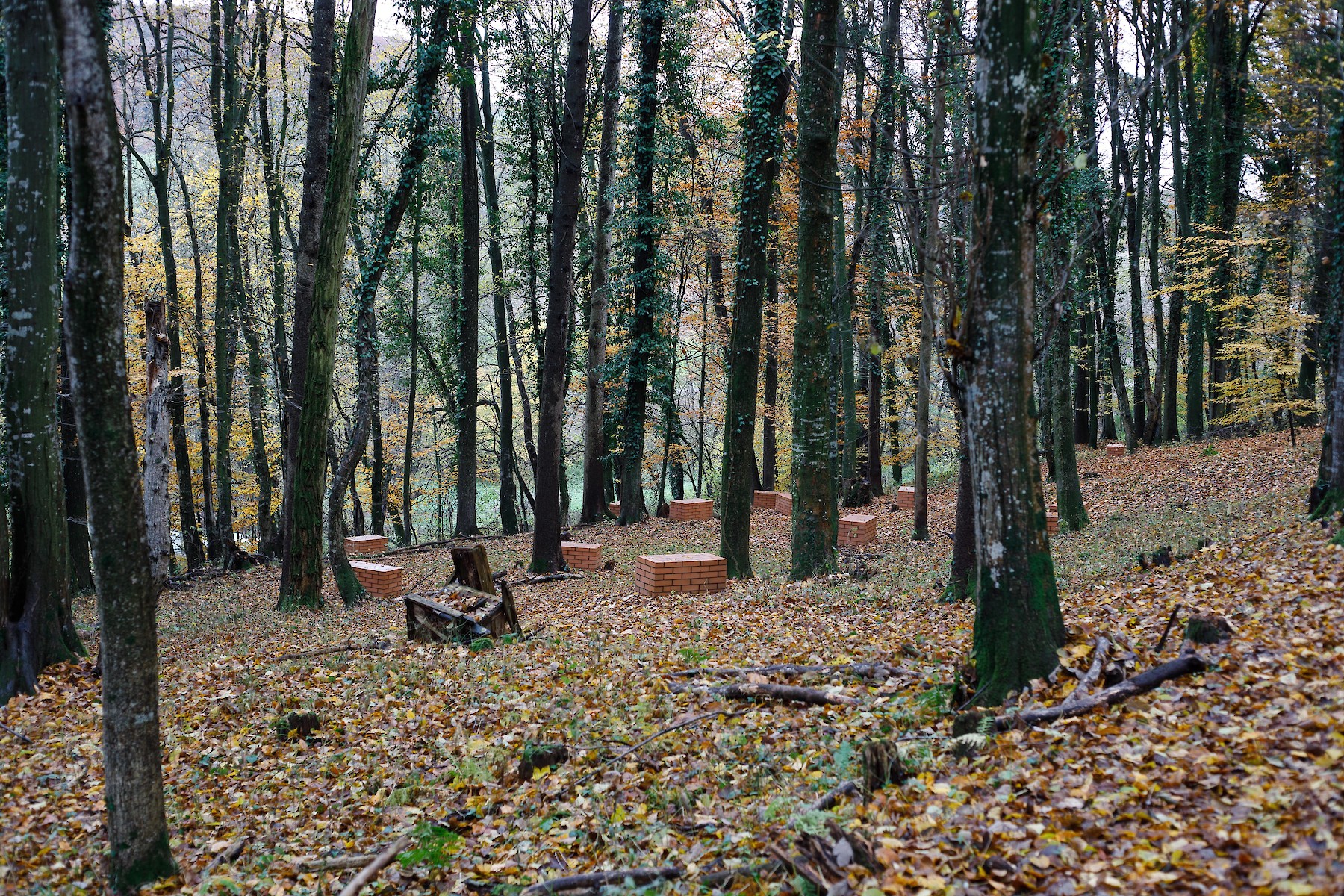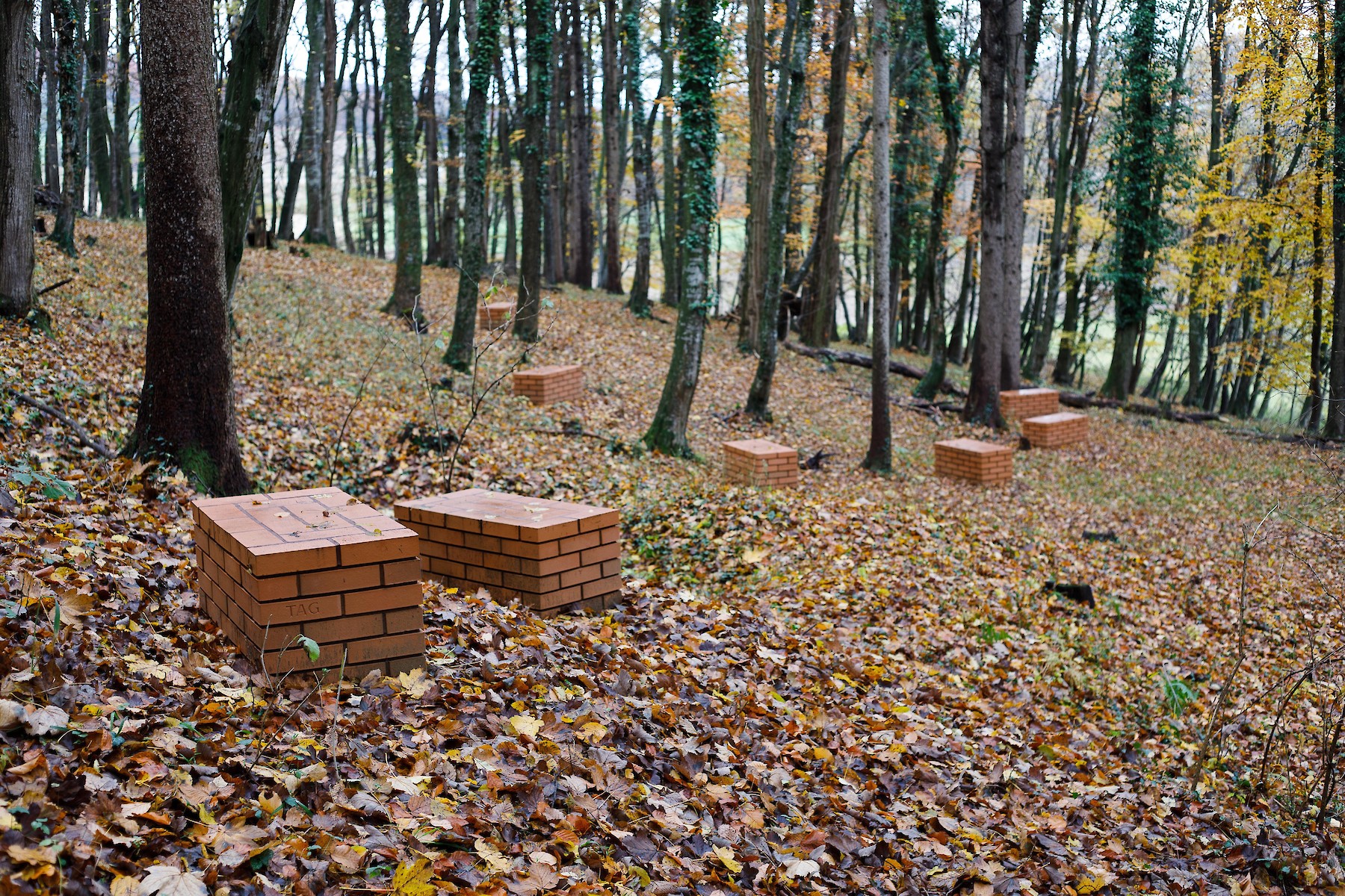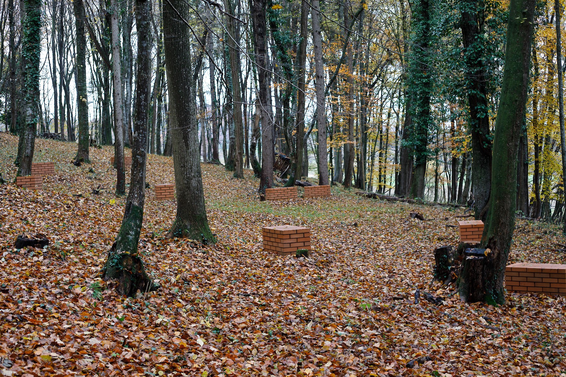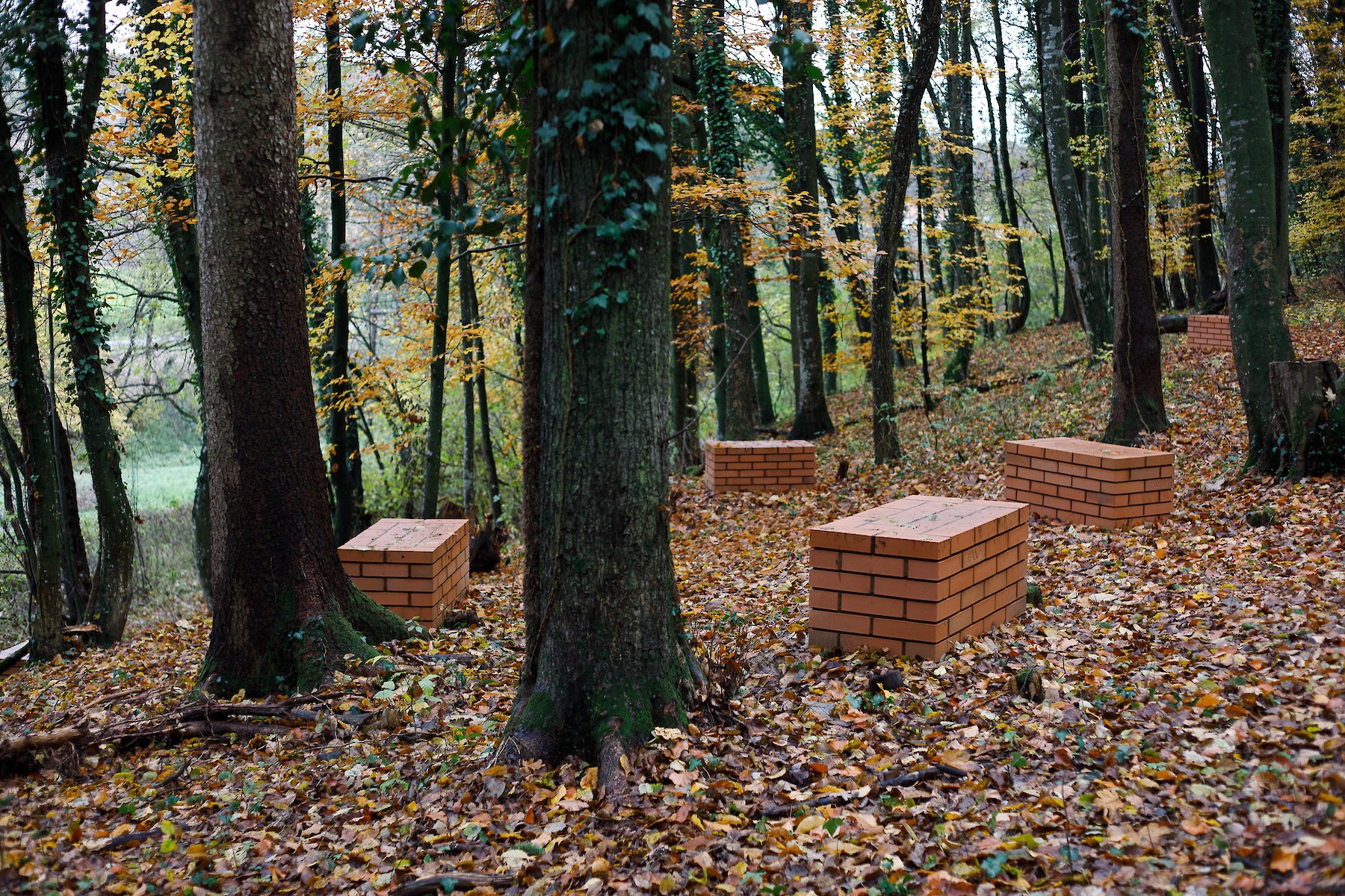 Aus seinen Untersuchungen zu Raum, Architektur und kulturellem Gedächtnis, zu kollektiver und individueller Erinnerung, schuf er in diesem Waldstück in Poppendorf einen neuen Raum, der mit seiner Umgebung im Dialog steht. ASSEMBLY #1 ist ein autonomes Kunstwerk und gleichzeitig eine (Möbel-)Skulptur. 21 aus Ziegeln zusammengesetzte Bänke, denen ebenso viele lyrische Wortpaare eingraviert sind, lassen ein räumliches Gedicht im Wald entstehen. Damit erschließt sich uns eine neue Realität und eine Basis für Kommunikation, aber auch Selbstbeobachtung und Gelassenheit.