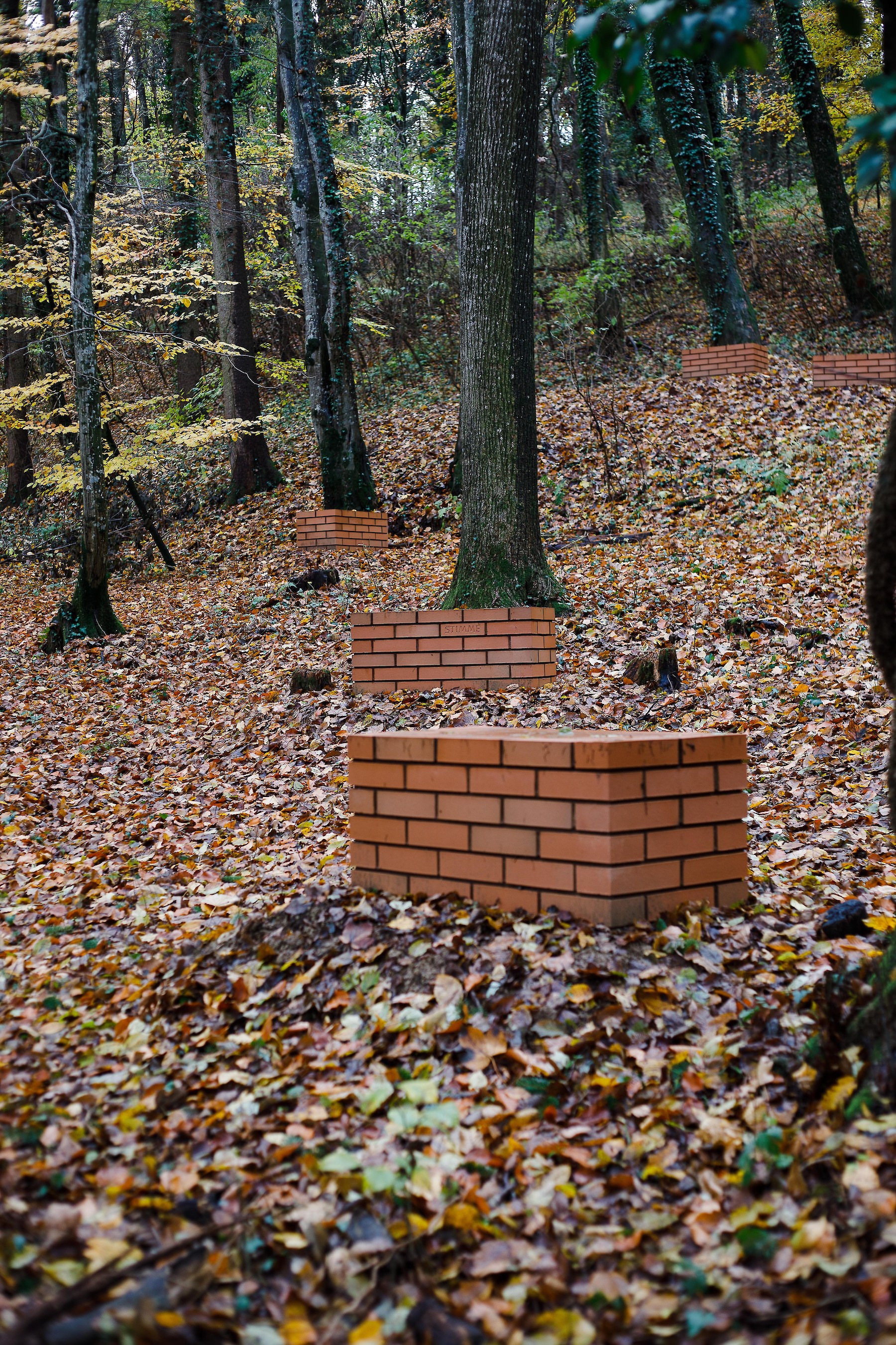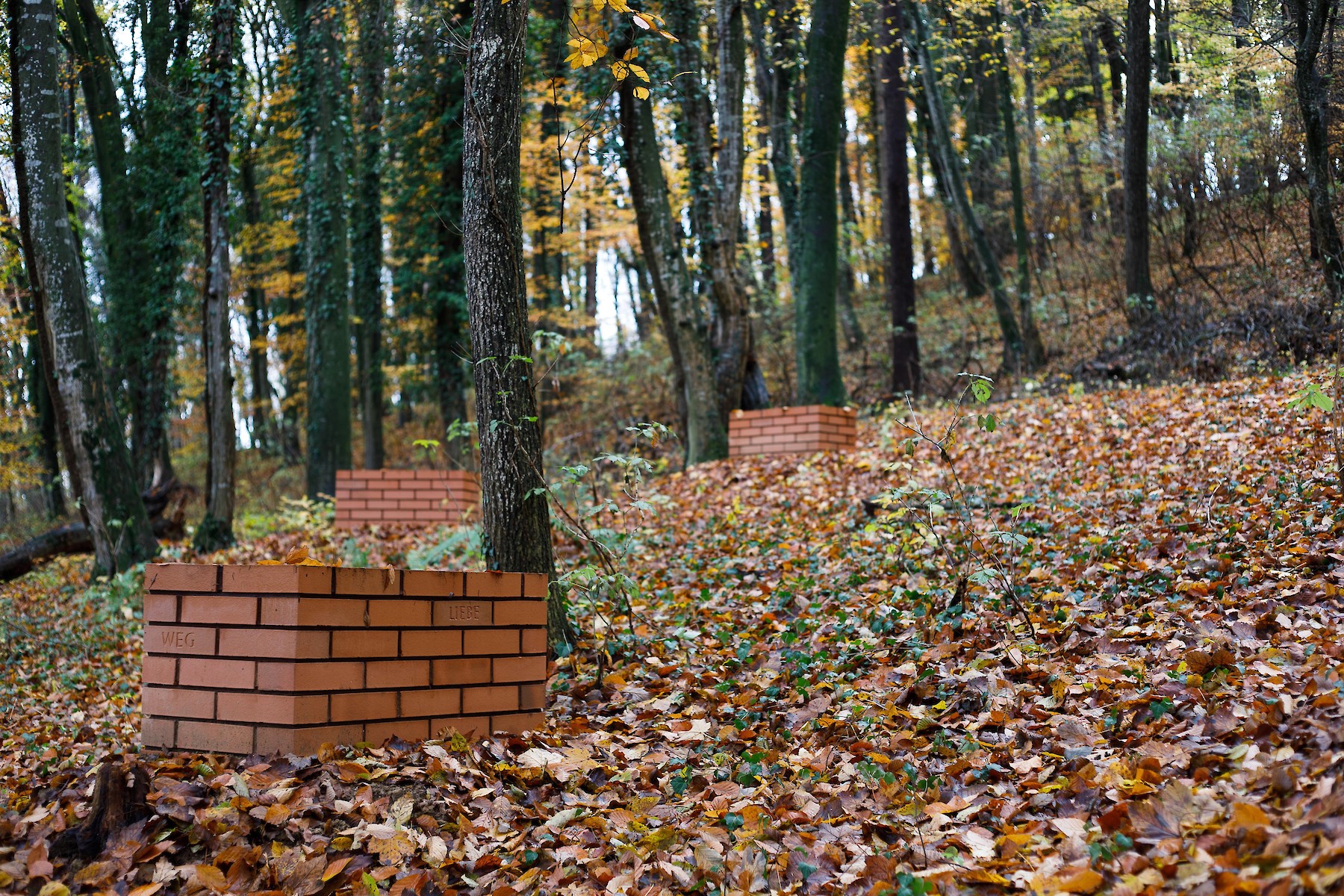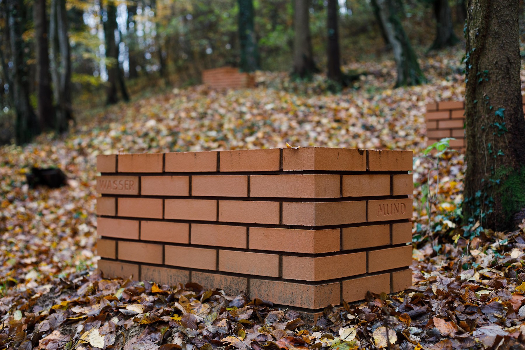Aus seinen Untersuchungen zu Raum, Architektur und kulturellem Gedächtnis, zu kollektiver und individueller Erinnerung, schuf er in diesem Waldstück in Poppendorf einen neuen Raum, der mit seiner Umgebung im Dialog steht. ASSEMBLY #1 ist ein autonomes Kunstwerk und gleichzeitig eine (Möbel-)Skulptur. 21 aus Ziegeln zusammengesetzte Bänke, denen ebenso viele lyrische Wortpaare eingraviert sind, lassen ein räumliches Gedicht im Wald entstehen. Damit erschließt sich uns eine neue Realität und eine Basis für Kommunikation, aber auch Selbstbeobachtung und Gelassenheit.