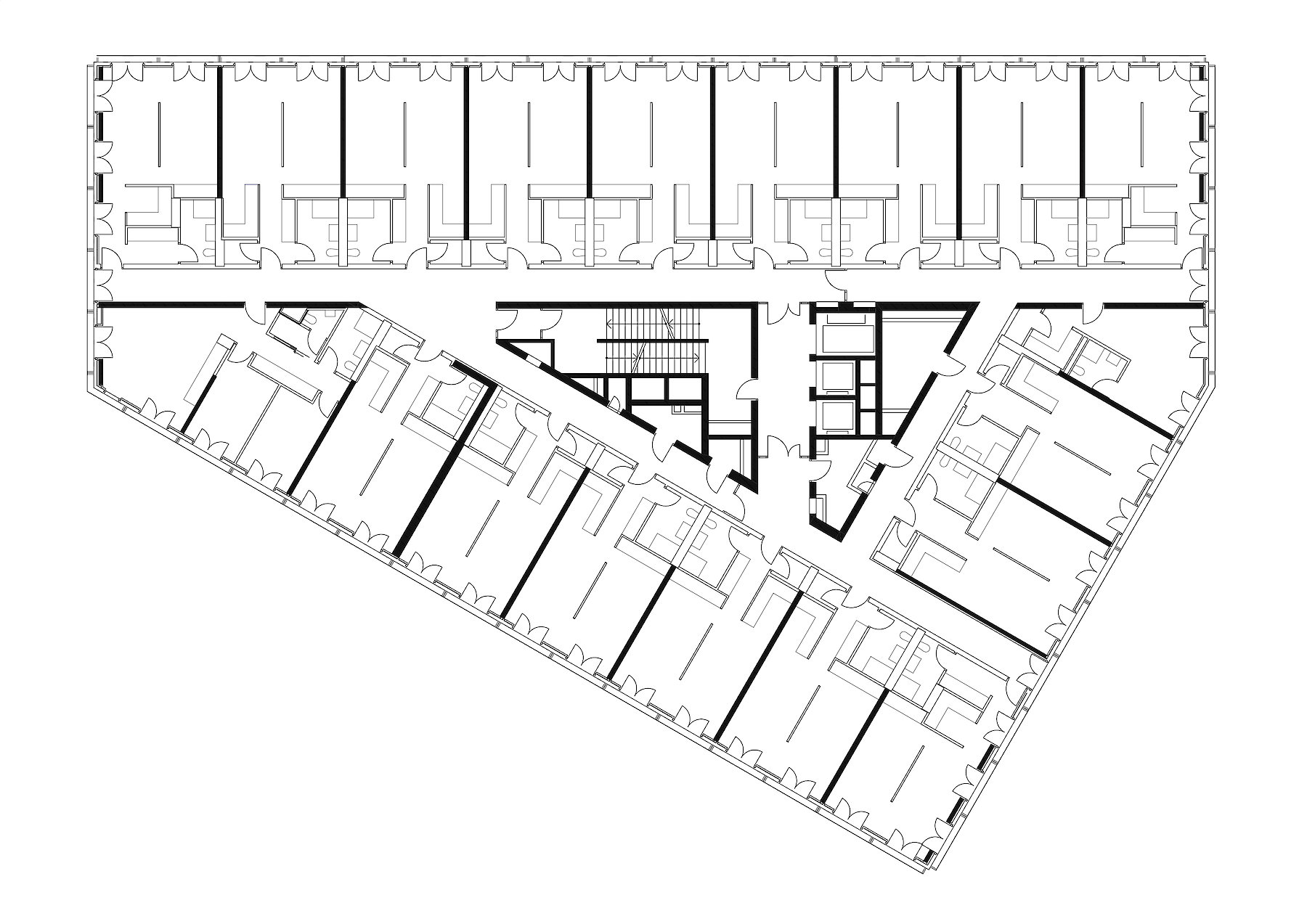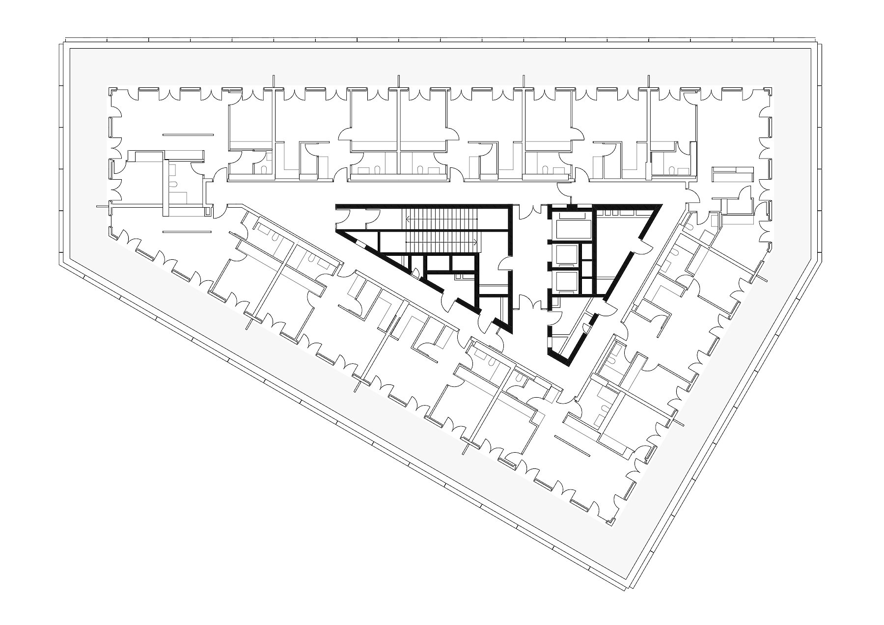 Innerhalb der unregelmäßigen Kontur dieser Grundstücksfläche waren Kleinwohnungen anzuordnen, die vor allem den Bedarf der angrenzenden UNO City abdecken sollen.