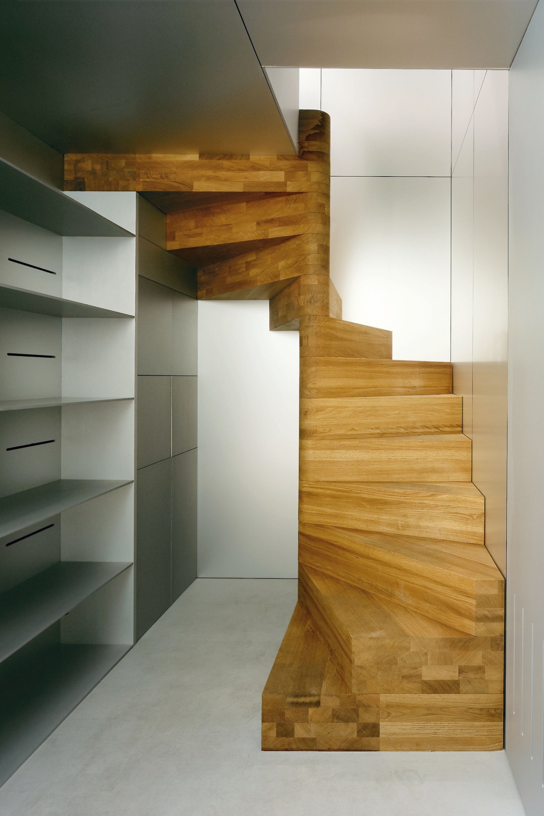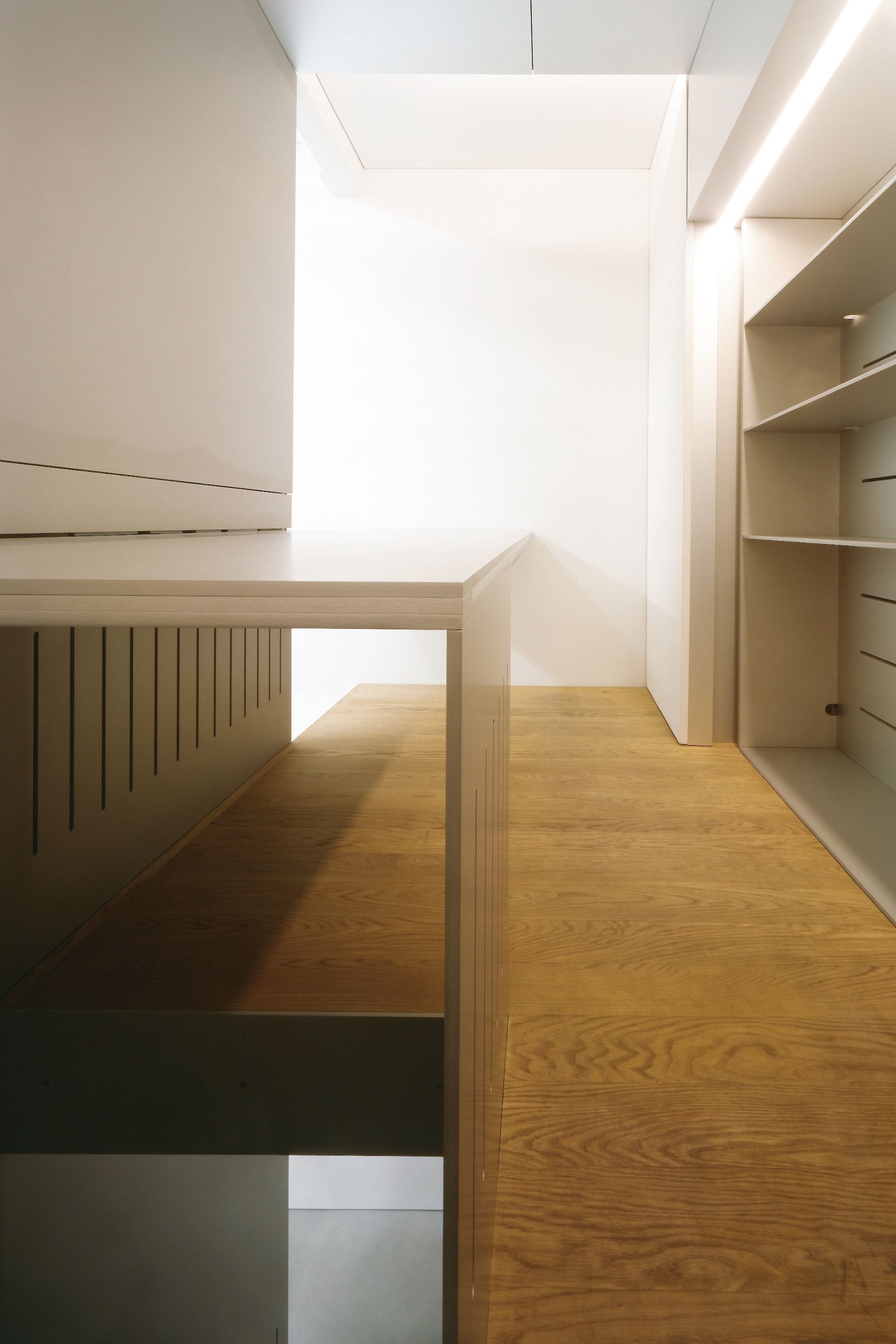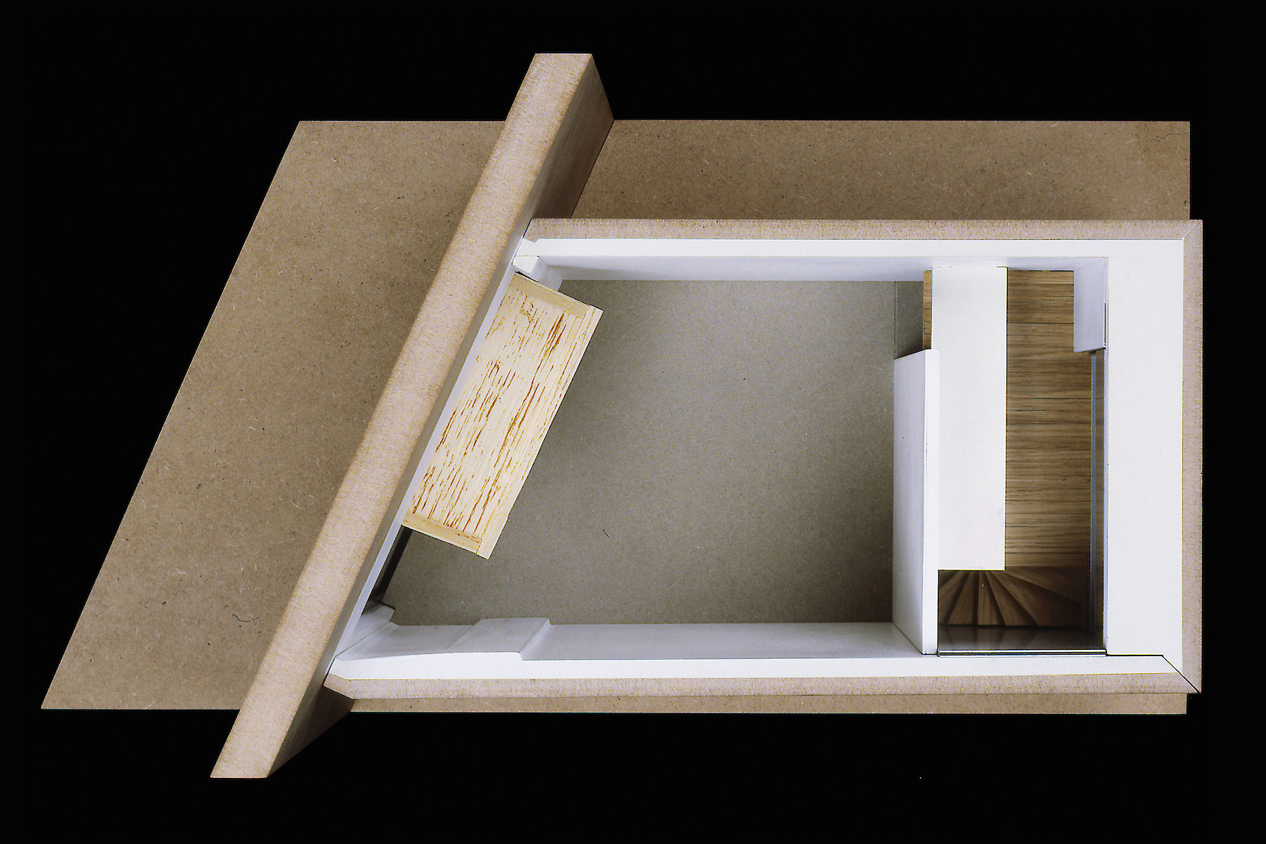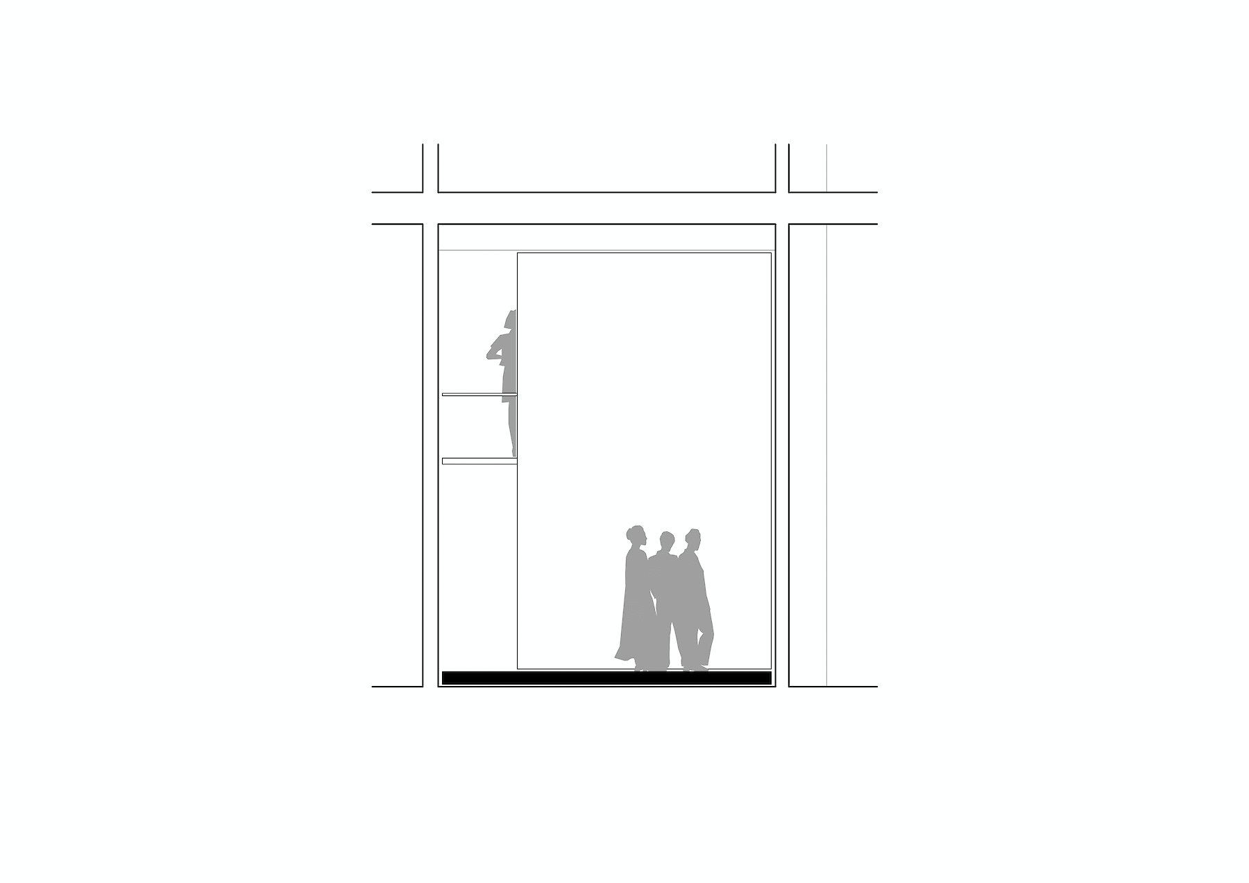 Der Reiz der Aufgabe bestand nicht nur in der Zusammenarbeit mit dem Galeristen und dem Künstler, sondern auch in der Tatsache, dass ein isoliert wirksames künstlerisches Objekt zu einem Teil der architektonischen Hülle mutiert. Auf engstem Raum vier funktionelle Anforderungen so zu verhandeln, dass der zweckgebundene Hintergrund nicht zwangsläufig zum Vordergrund wird, der so jegliche künstlerische Aussage überstrahlt, war wesentliches Thema der architektonischen Auseinandersetzung.