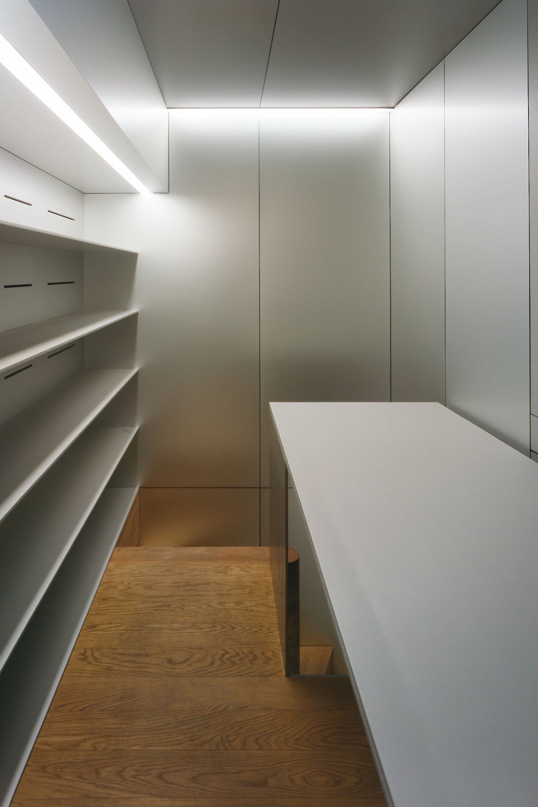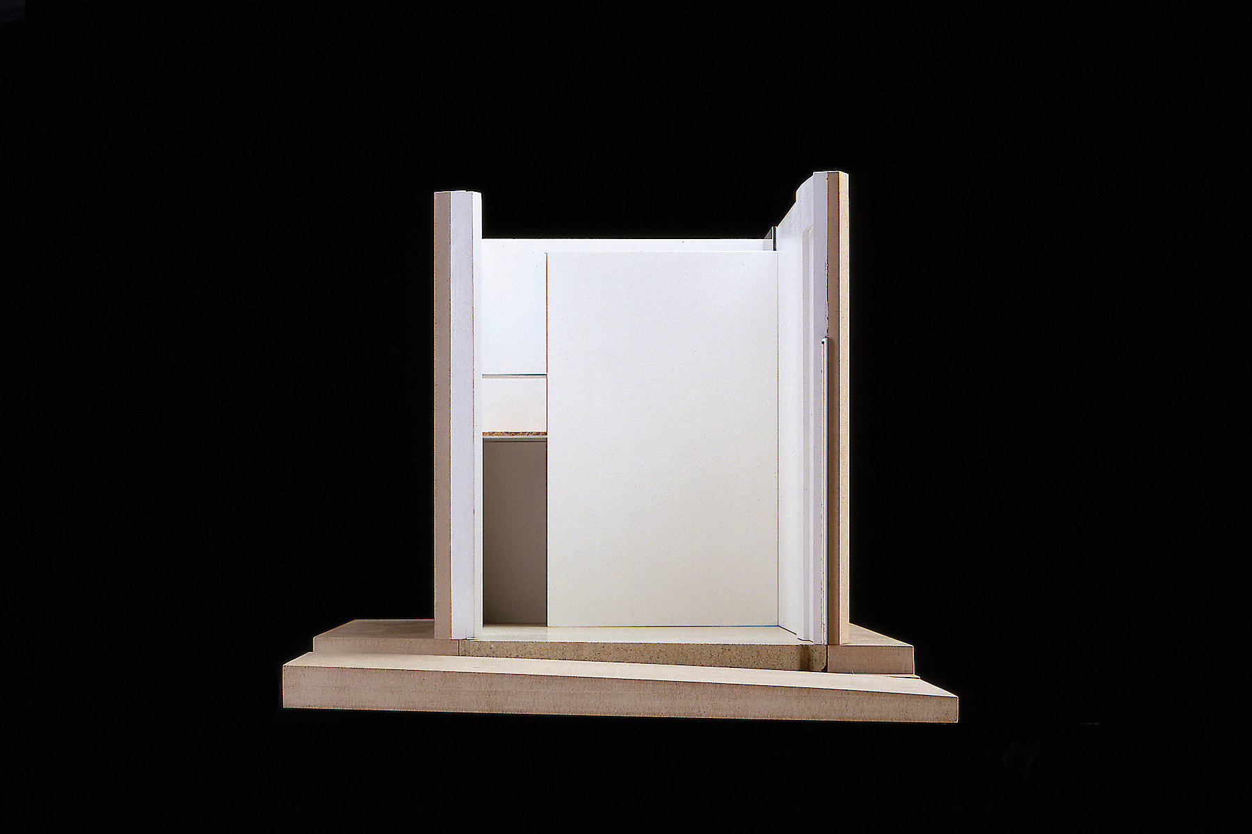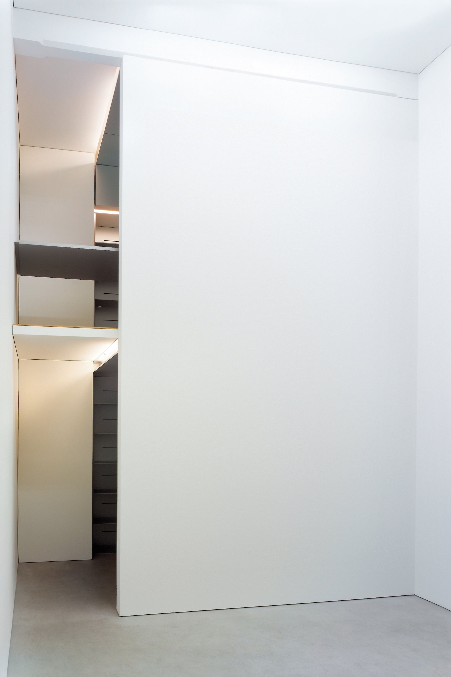 Der Reiz der Aufgabe bestand nicht nur in der Zusammenarbeit mit dem Galeristen und dem Künstler, sondern auch in der Tatsache, dass ein isoliert wirksames künstlerisches Objekt zu einem Teil der architektonischen Hülle mutiert. Auf engstem Raum vier funktionelle Anforderungen so zu verhandeln, dass der zweckgebundene Hintergrund nicht zwangsläufig zum Vordergrund wird, der so jegliche künstlerische Aussage überstrahlt, war wesentliches Thema der architektonischen Auseinandersetzung.