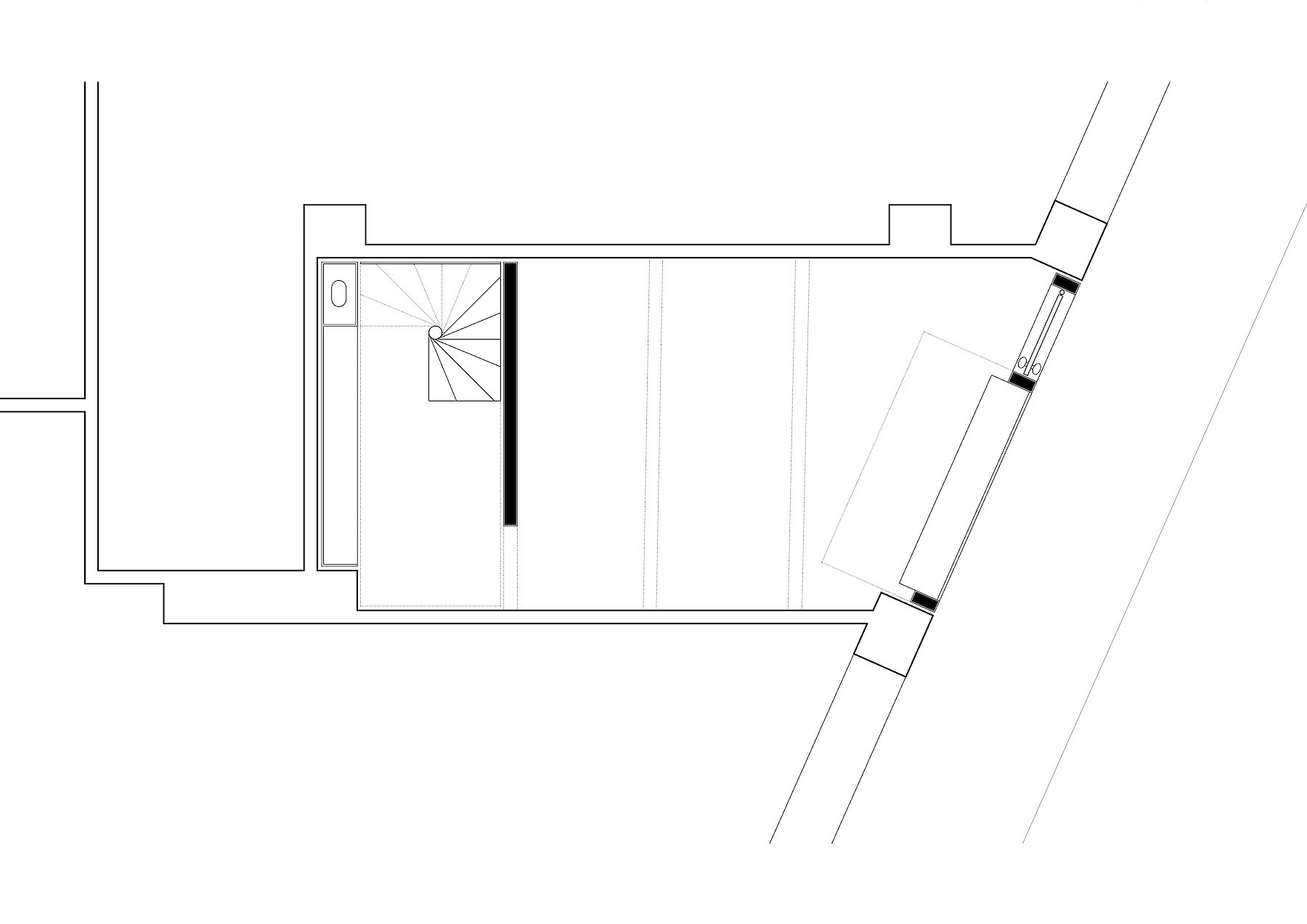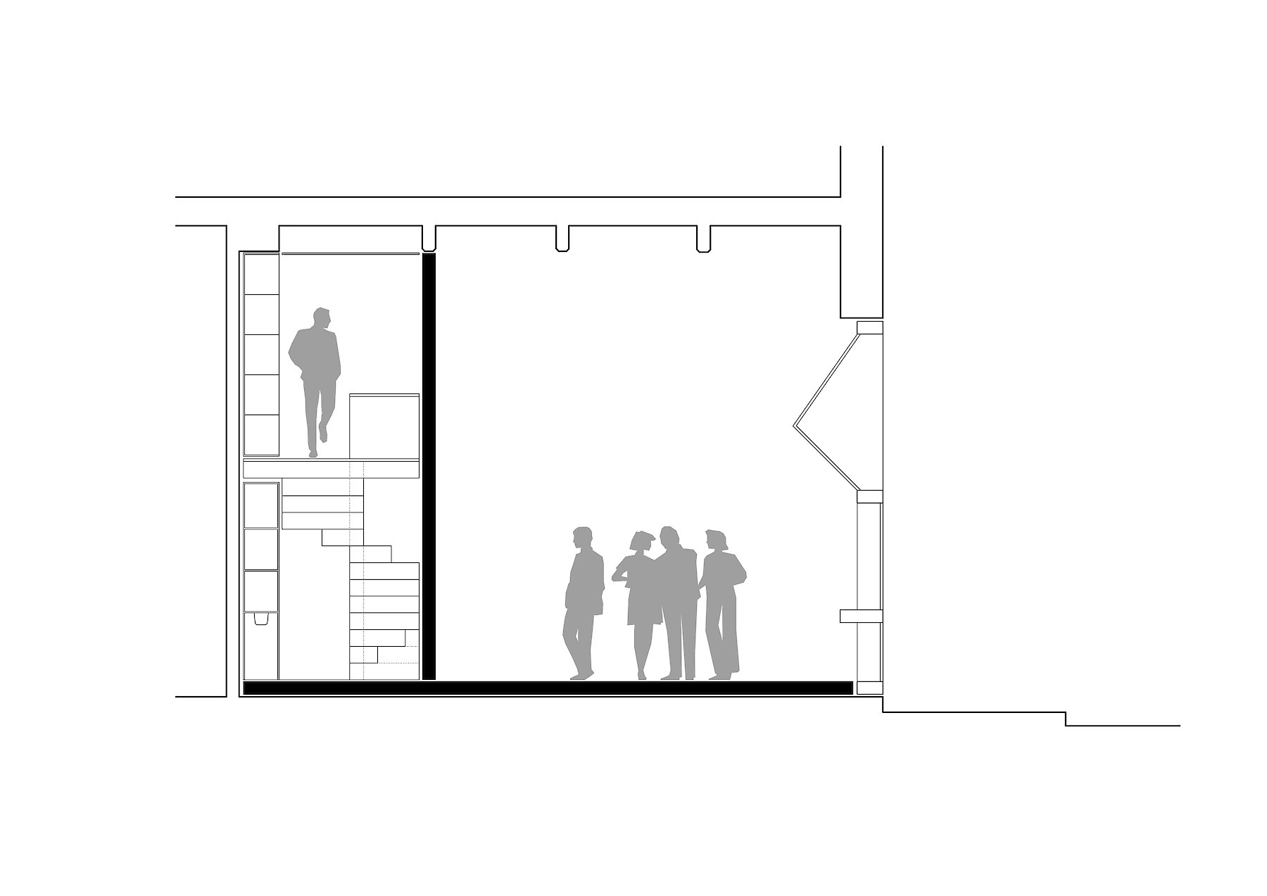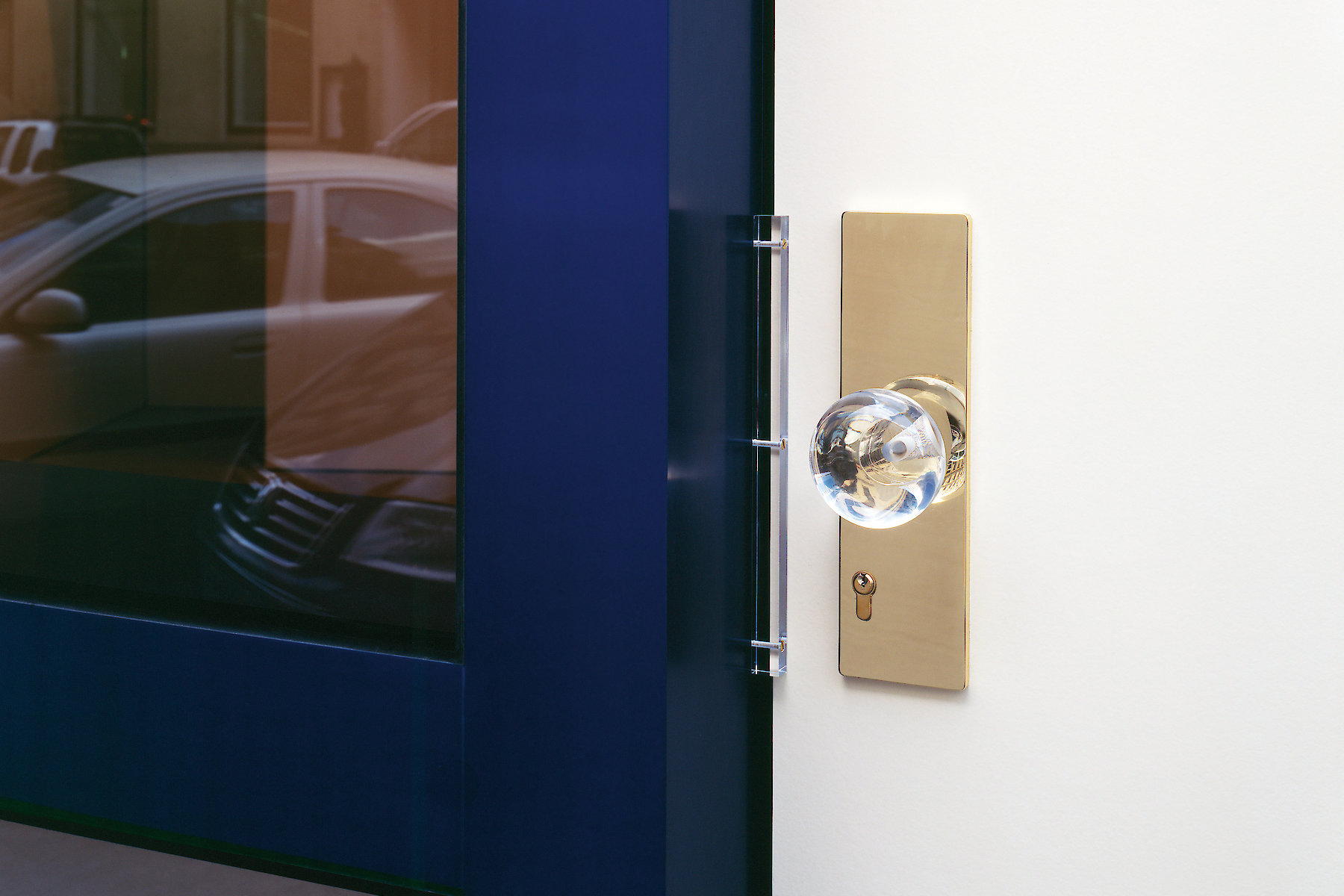Der Reiz der Aufgabe bestand nicht nur in der Zusammenarbeit mit dem Galeristen und dem Künstler, sondern auch in der Tatsache, dass ein isoliert wirksames künstlerisches Objekt zu einem Teil der architektonischen Hülle mutiert. Auf engstem Raum vier funktionelle Anforderungen so zu verhandeln, dass der zweckgebundene Hintergrund nicht zwangsläufig zum Vordergrund wird, der so jegliche künstlerische Aussage überstrahlt, war wesentliches Thema der architektonischen Auseinandersetzung.