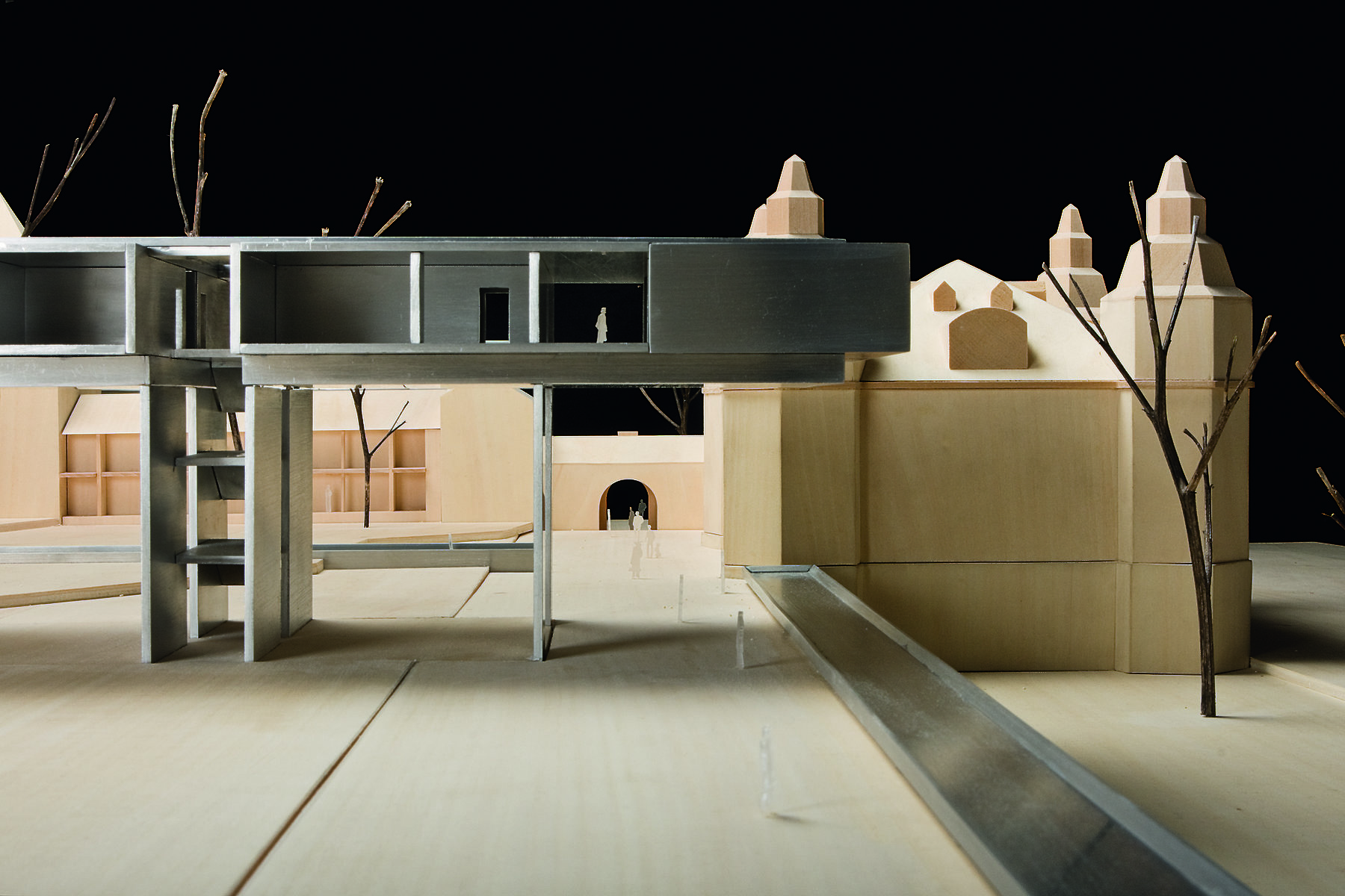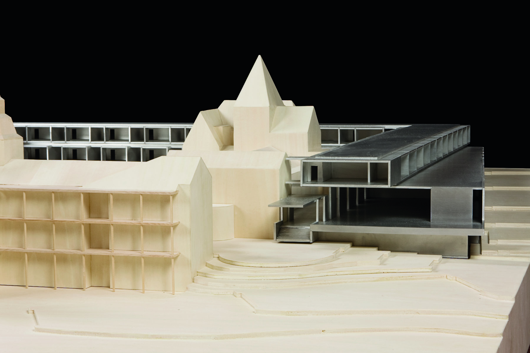 Auf den Wunsch nach einer erweiterten und deutlich sichtbaren Identität des Ortes reagierte der Entwurf mit einem Ensemble von drei Baukörpergruppen, die mit ihrer gemeinsamen Formensprache eine Einheit bilden, auch wenn sie nicht immer in unmittelbarer Nachbarschaft zueinander angeordnet sind.