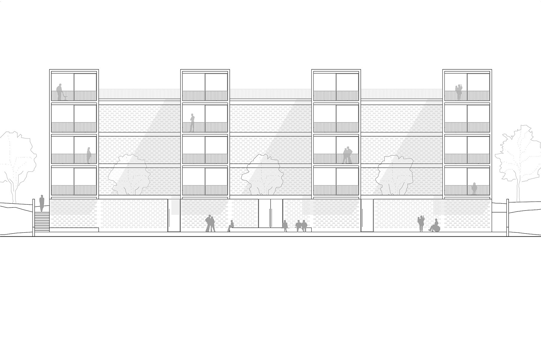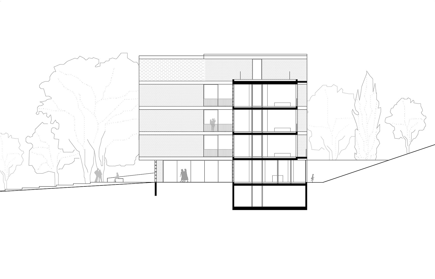 Im nordöstlichen Abschnitt der Steinhofgründe soll auf dem Areal eines ehemaligen Betriebsgebäudes ein Wohnbau errichtet werden. Das Nutzungsspektrum des Neubaus verlangt nach einer räumlichen Flexibilität, die eine Mischnutzung aus Kindergarten, Wohngemeinschaften und Familienwohnungen zulässt.