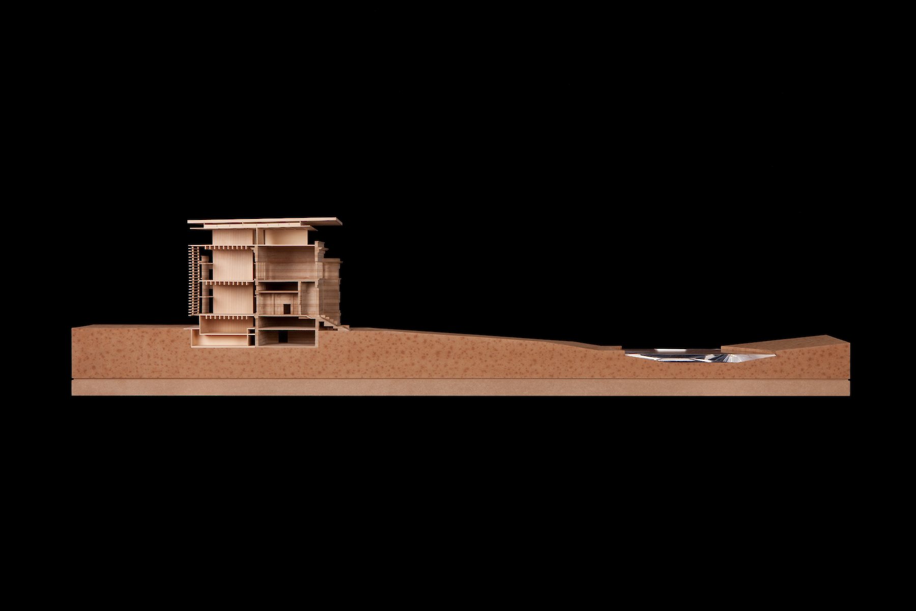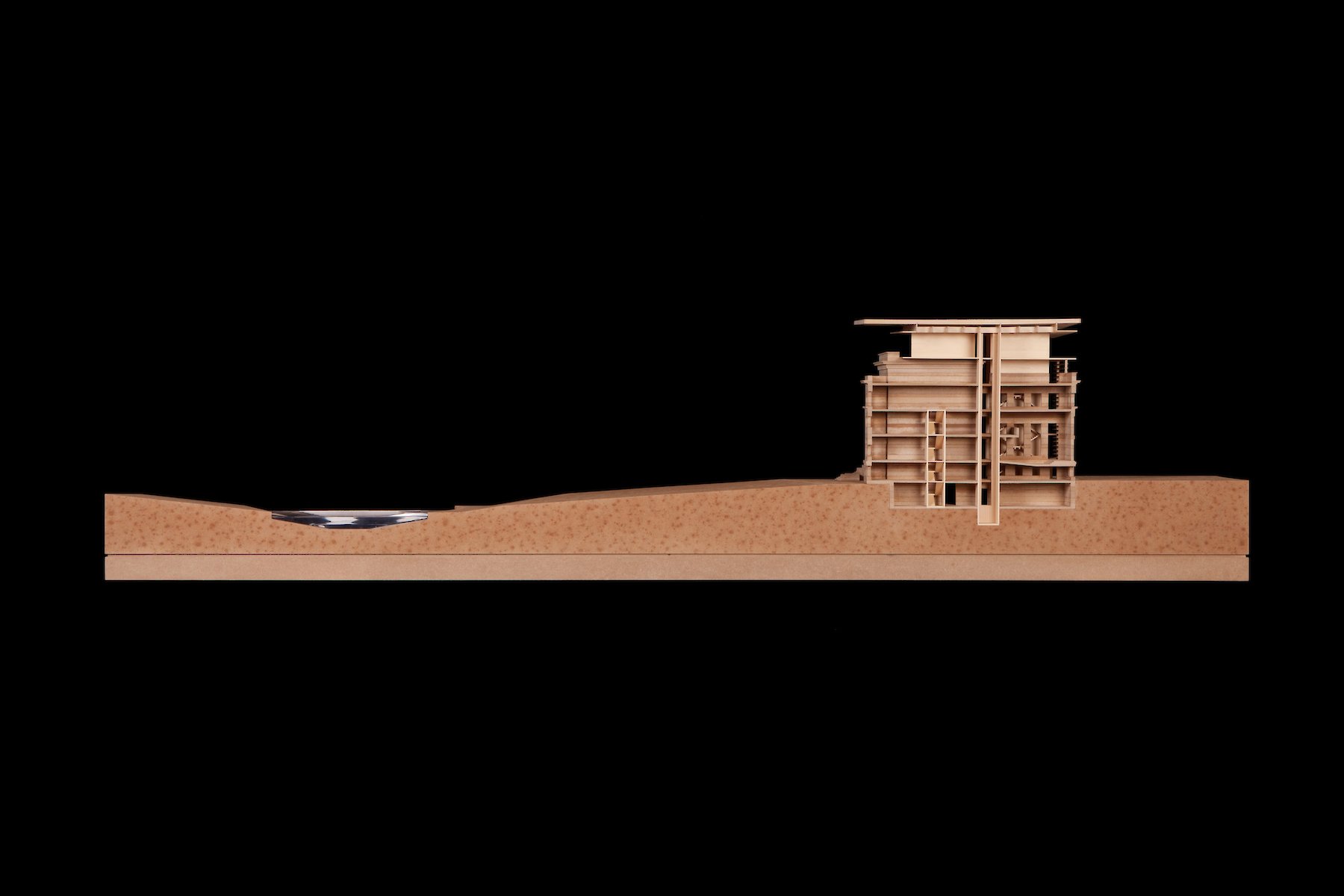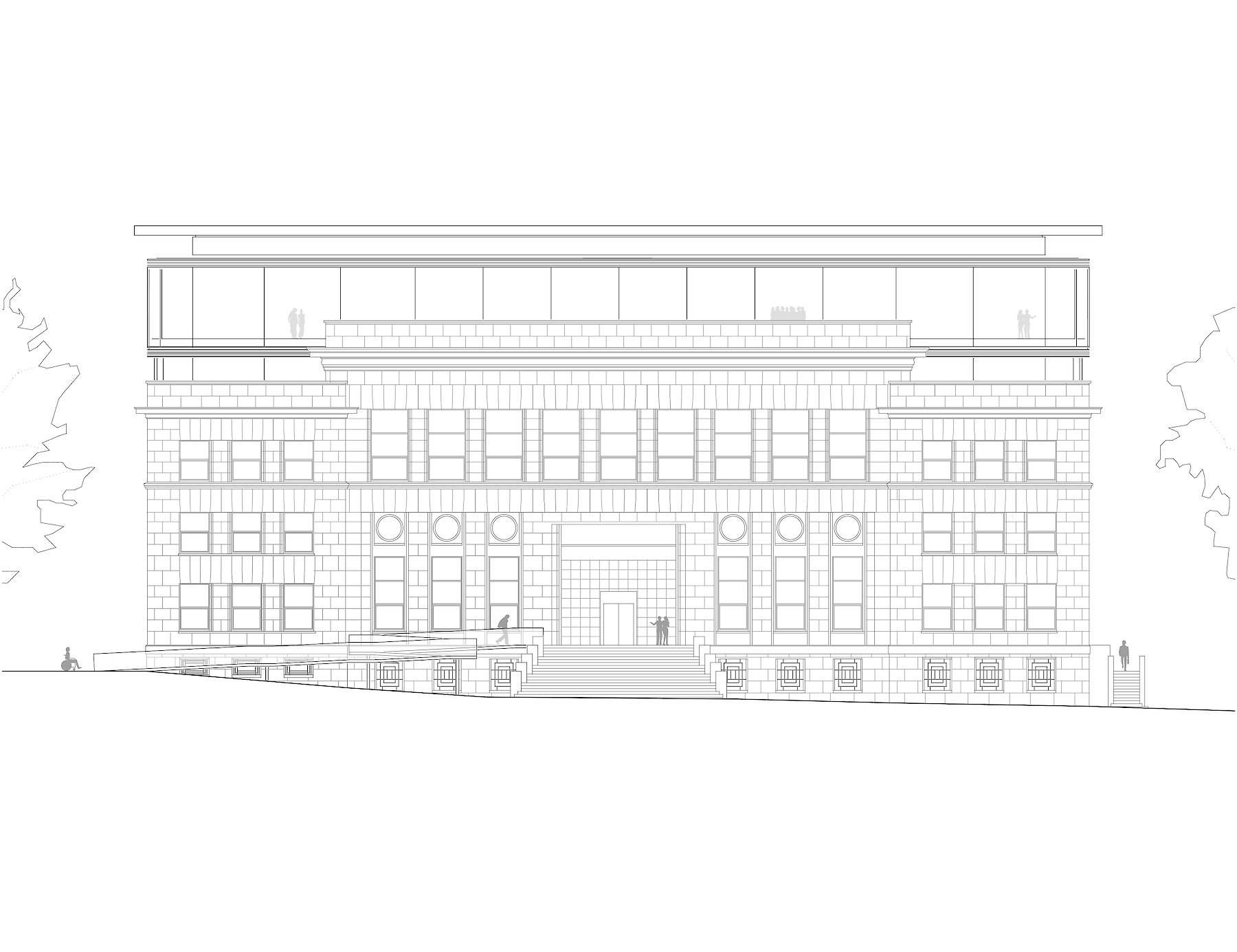 An der höchsten Stelle des Gebäudes wird auf dem gesamten neuen Ausstellungsniveau durch die Glasfassade eine Sichtbeziehung in die Nachbarschaft etabliert. Auf diese Weise ist der Rundblick in den Umgang der Besucher miteinbezogen, wird  selbst zum Exponat aber auch zum ständigen Bezugspunkt der Orientierung.