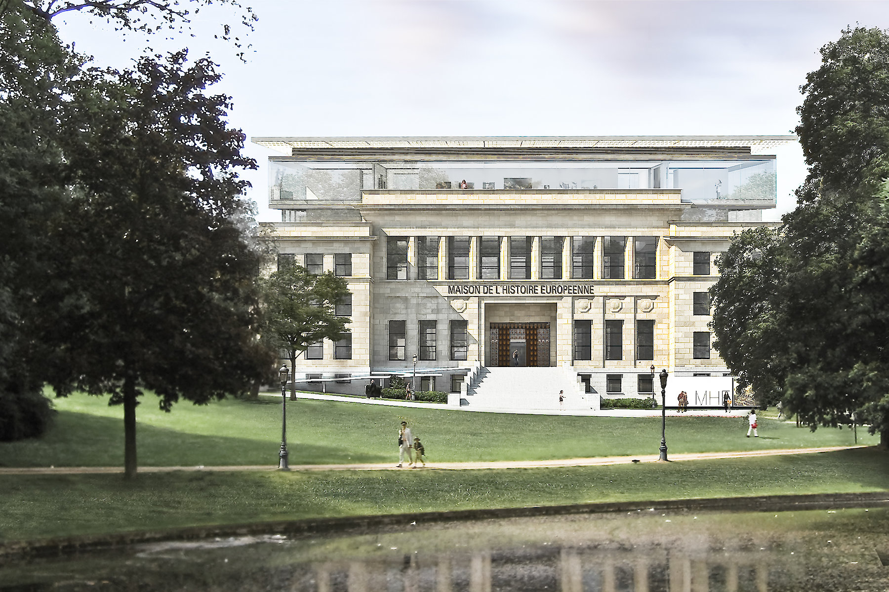 Die erforderliche Erweiterung orientiert sich an der räumlichen Struktur des Eastman Gebäudes im Park Leopold, das so zum Grundgerüst einer Neuplanung wird. Das Grundmuster des Baubestandes wird im Innenhof, und über den Oberlichtsälen mit neuen Räumen fortgesetzt.