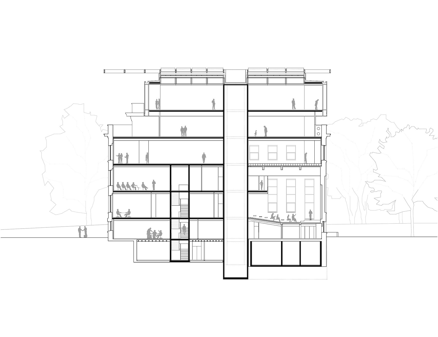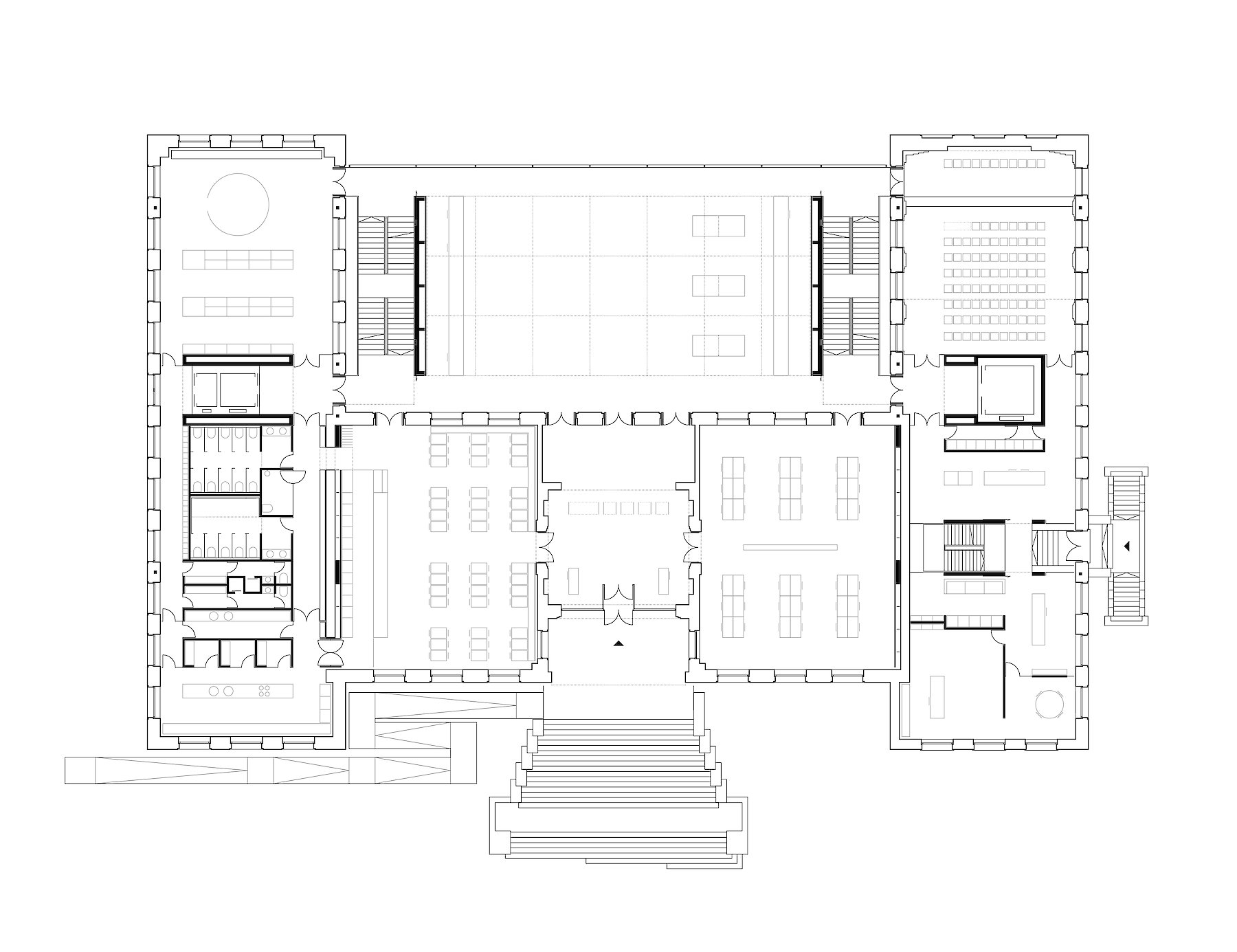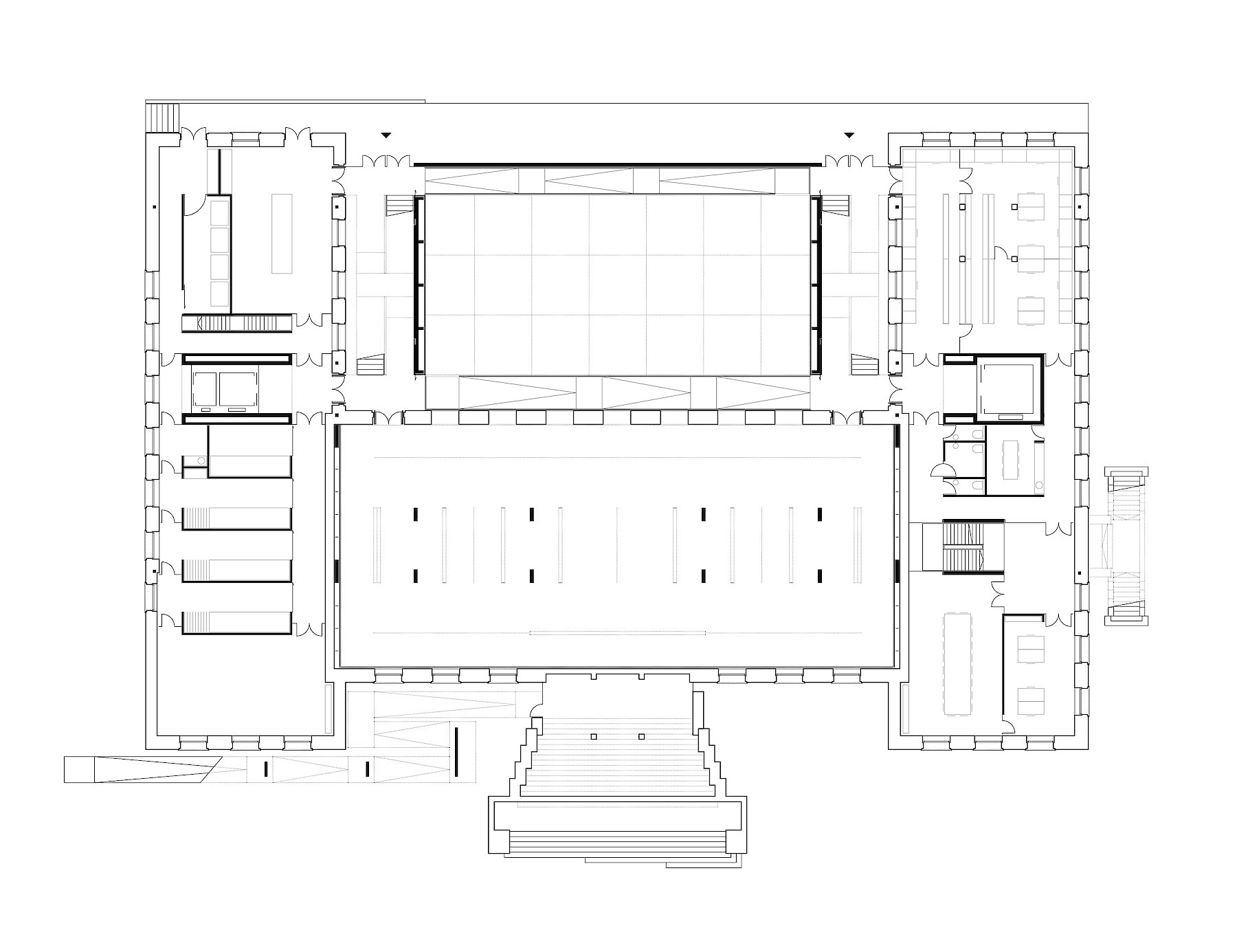 Entsprechend der neuen Nutzung werden die Räume des Bestands weitgehend von Einbauten entlastet, um möglichst großzügige, flexibel unterteilbare Flächen zu schaffen.