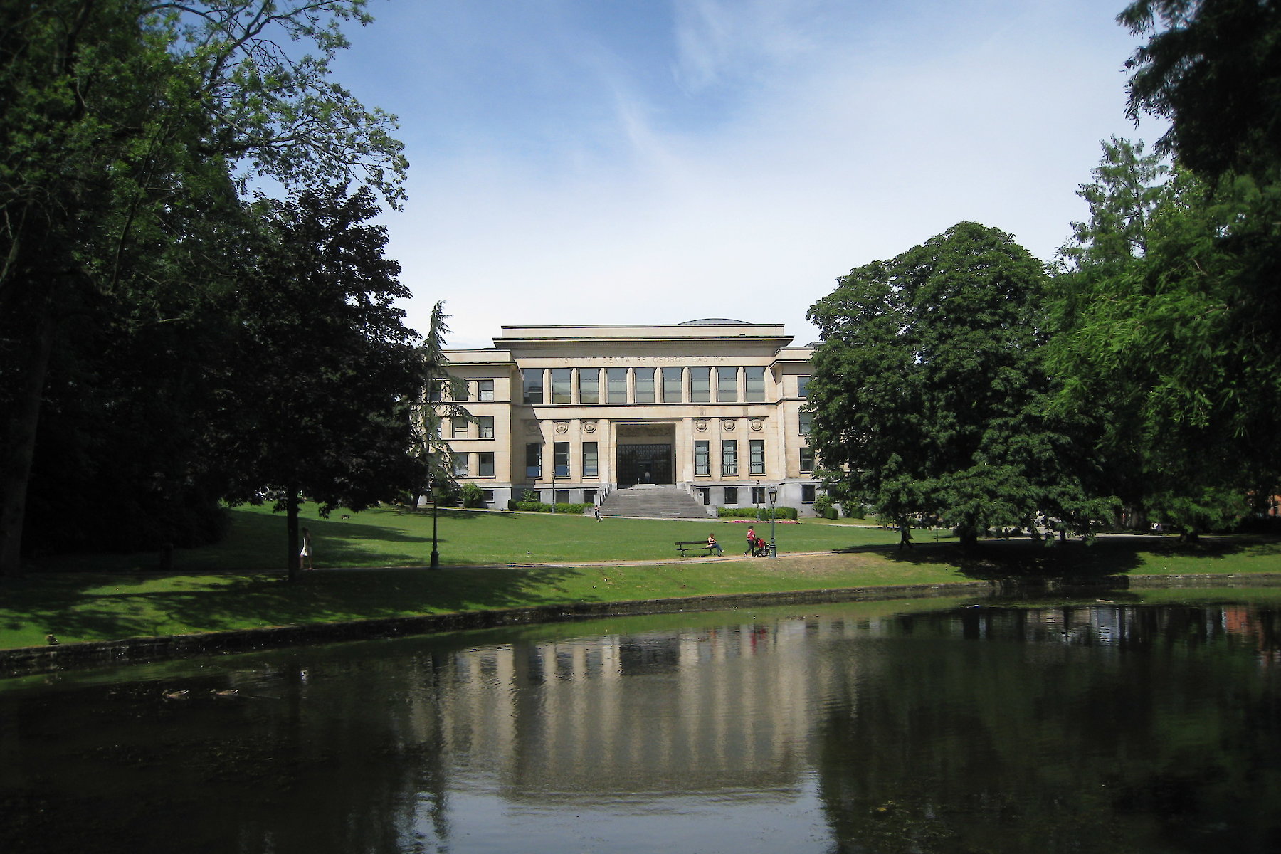 Die erforderliche Erweiterung orientiert sich an der räumlichen Struktur des Eastman Gebäudes im Park Leopold, das so zum Grundgerüst einer Neuplanung wird. Das Grundmuster des Baubestandes wird im Innenhof, und über den Oberlichtsälen mit neuen Räumen fortgesetzt.